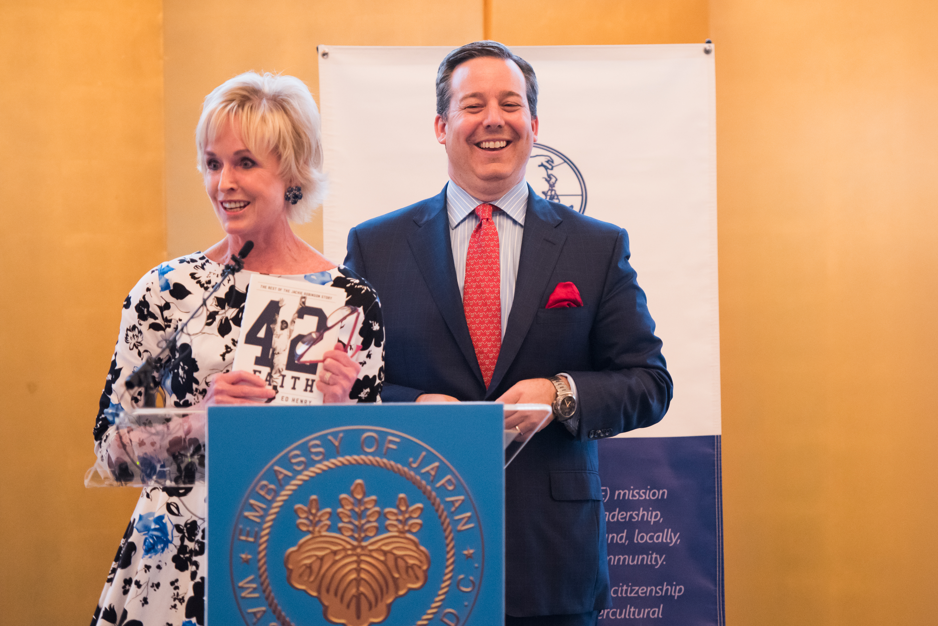 Ed Henry was the guest of honor along with Mayor of DC Muriel Bowser at the residence of The Ambassador of Japan and Mrs. Sasae. The event was created by Kathy Kemper, founder of The Institute for Education that convenes diplomats, political, business, media, academic, and community leaders at the highest levels to encourage collaboration in establishing common ground and for leaders to share knowledge and explore innovative solutions to the most critical challenges of our time. Ambassador Sasae welcomed a full house and acknowledged all of the Ambassadors in the room – step and repeat – graciously announced the ones he forgot.