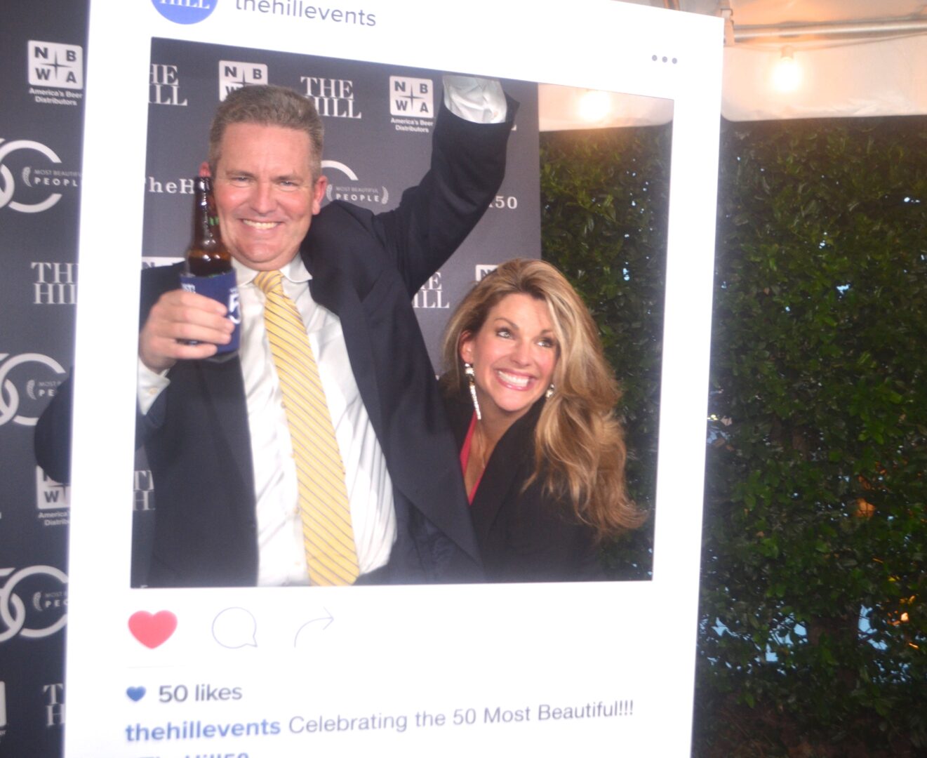 “Welcome to The Hill’s 50 Most Beautiful celebration,” said Editor in Chief Bob Cusack. “This is our 13th annual list, which also got a nice shout-out on Veep this past season. I’m glad many of the nominees were able to join us. Please make sure to congratulate anyone with a blue bracelet, as those people made the list. Those bracelets are not transferable. I’d also definitely like to thank the National Beer Wholesalers Association for their longstanding commitment to the success of this event. Remember, we’ve got brews here tonight, exotic ones. If you did not make the list, you can make it next year.”