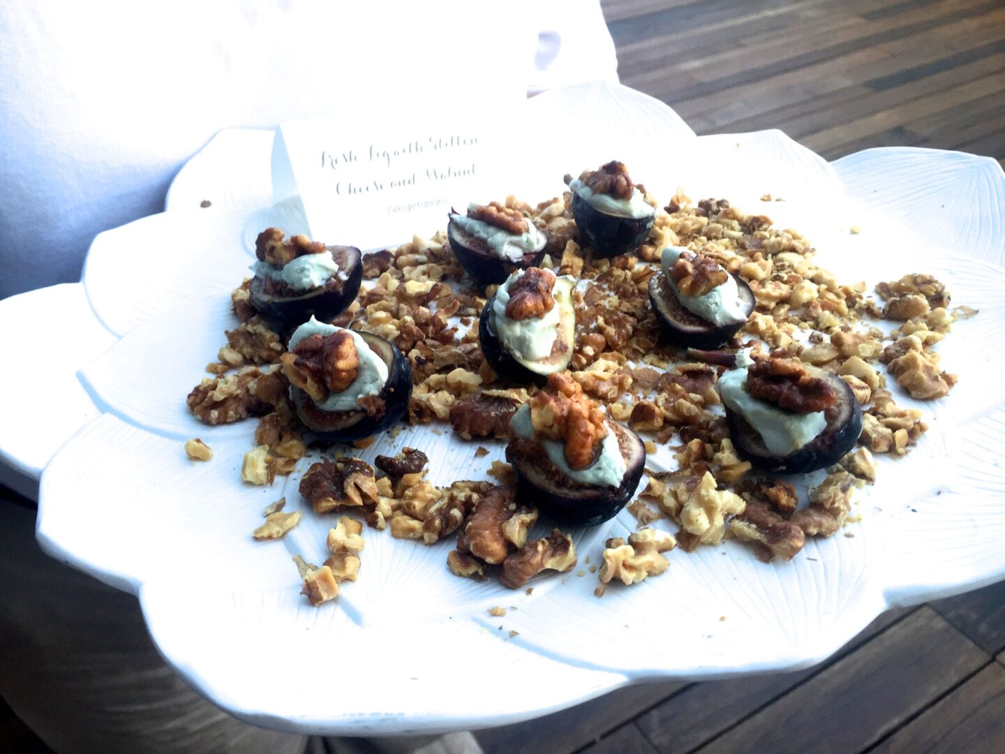 First of all, we’d like to thank the fig lady who served up platters of the fresh fruit smothered in walnuts and covered with Stilton cheese and offered in abundance at The Hill’s 50 Most Beautiful annual event held this year at The Observatory at America’s Square on New Jersey Avenue. We’re not sure if the ‘beautiful’ people were tempted by the high carb appetizers, but we liked them so much we went home and googled a recipe.