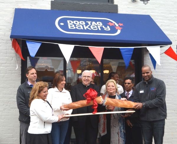 “Theirs is a match made in heaven, I think it’s fair to say,” said CNN’s Jake Tapper when introducing philanthropist Connie Milstein and Father Rick Curry at the dedication of the Dog Tag Bakery in Georgetown. “The fact is that we are standing here on Grace Street, it might be observed – as evidence of their partnership.”