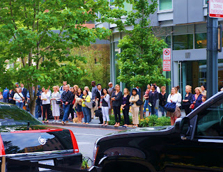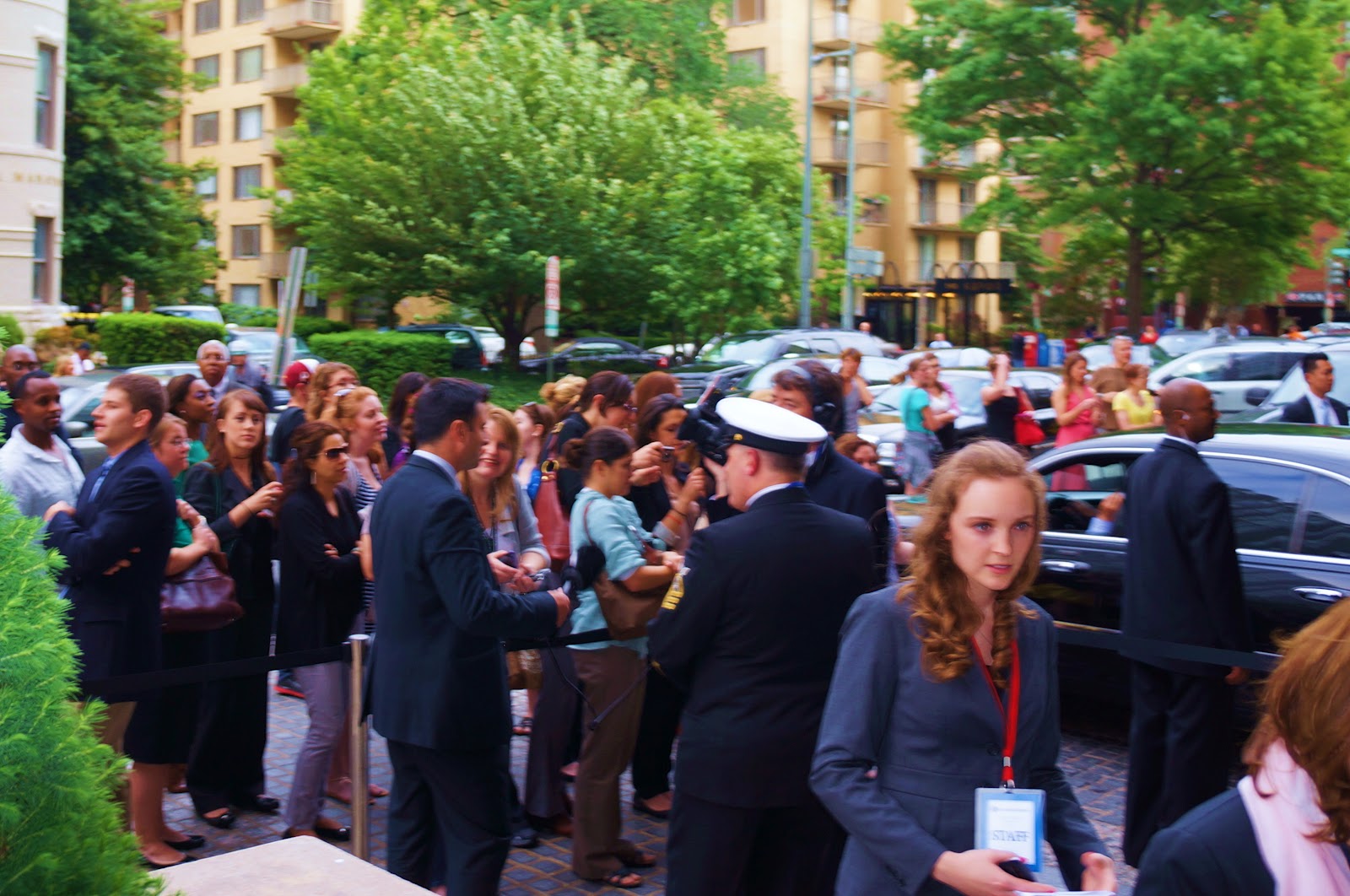 But it was Harry causing the big stir for the evening. Flocks of girls (young and old) lined the streets leading to the Ritz, all hoping to catch a glance of the young Prince. The crowd squealed as he stepped from his car, but the Prince was unphased. This is actually Harry’s first time being in Washington DC and he was all business, turning away from the press as he walked inside, stopping only briefly to greet Frederick Kempe, President and CEO of the Atlantic Council.