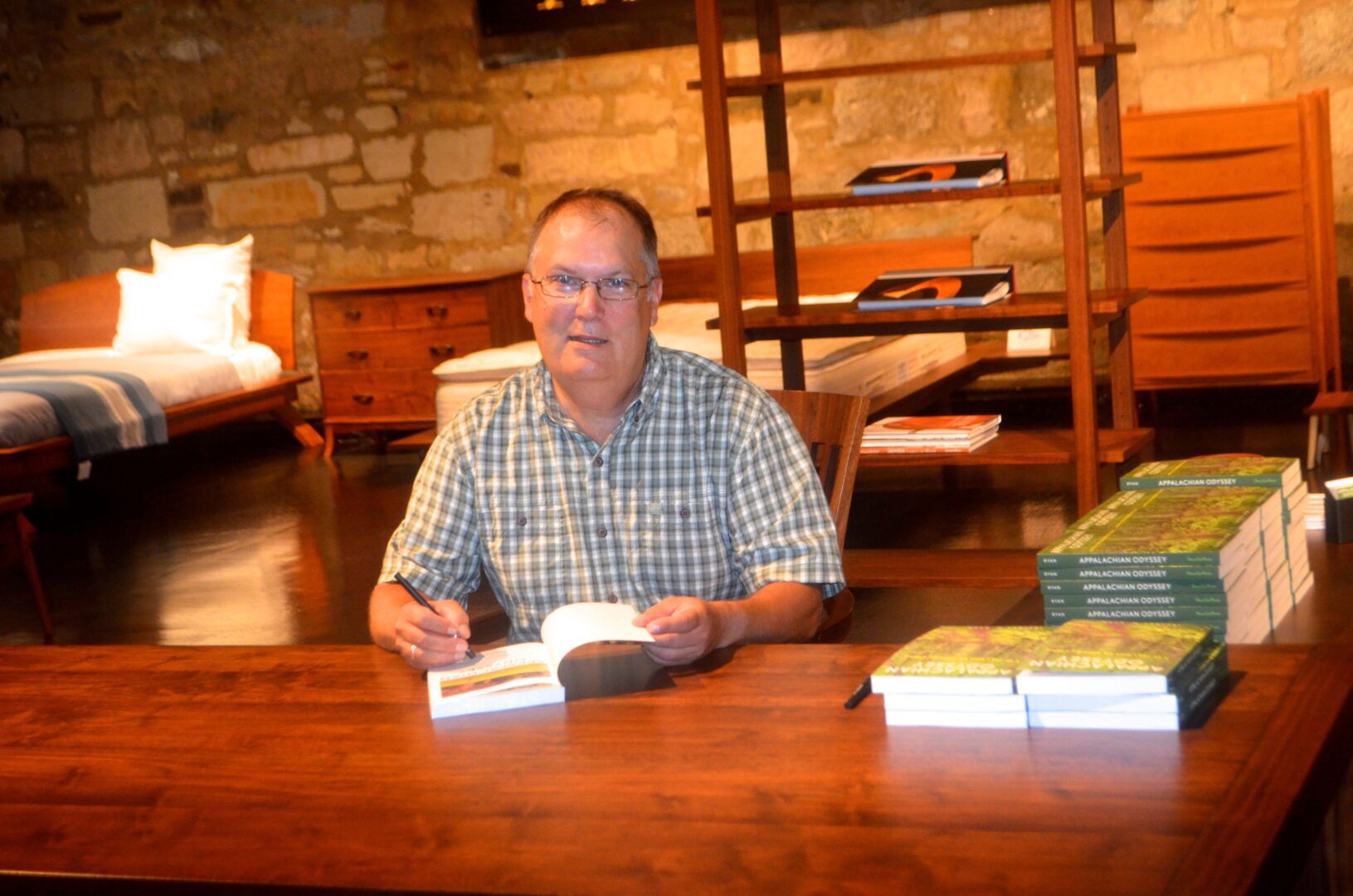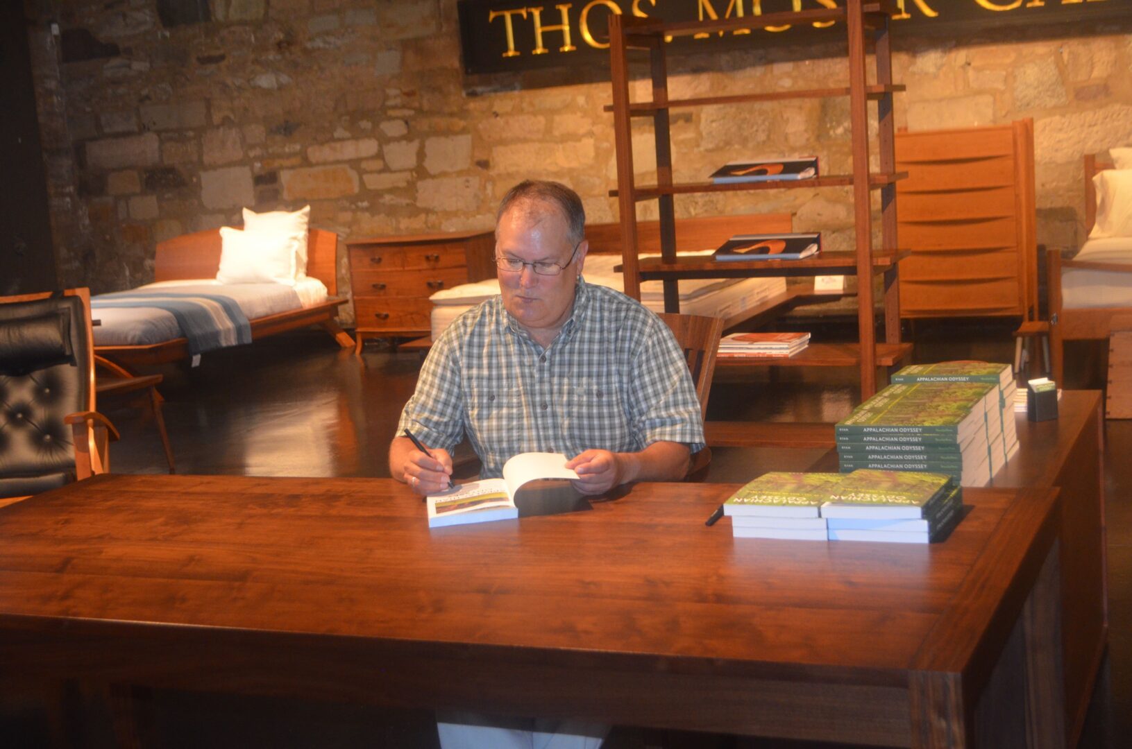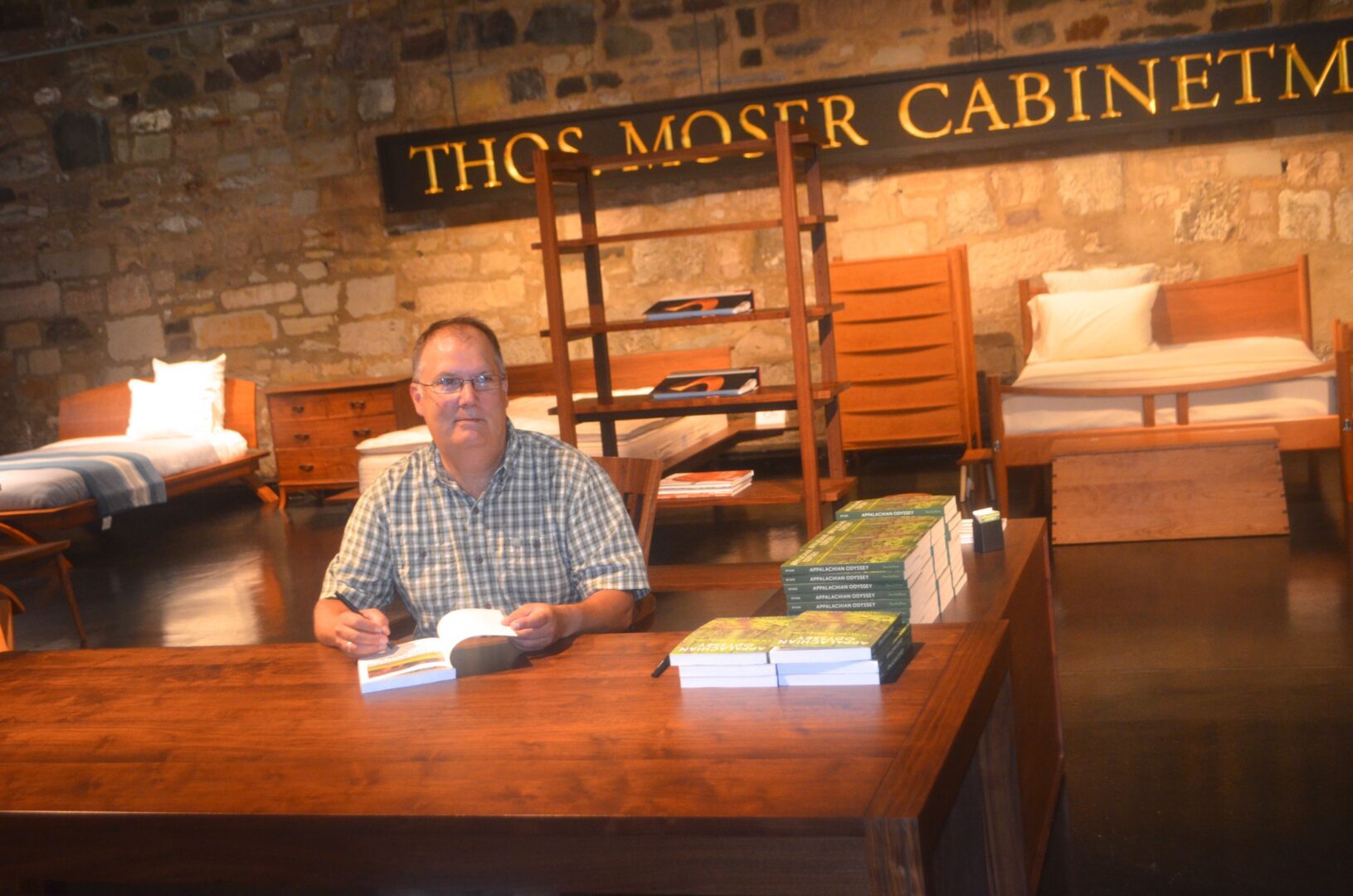 “After almost three decade of walking, I discovered that the secret the trail repeatedly held for me was this: If we head in the direction of our dreams and accept the winds and rains that will test our resolve, we can experience the deep satisfaction of looking back upon the path of a life well lived.” Jeffrey H. Ryan. Thos. Moser Georgetown Showroom hosted the first stop on Jeff Ryan’s five-month tour for his new book Appalachian Odyssey about his 28-year journey hiking the Appalachian Trail.