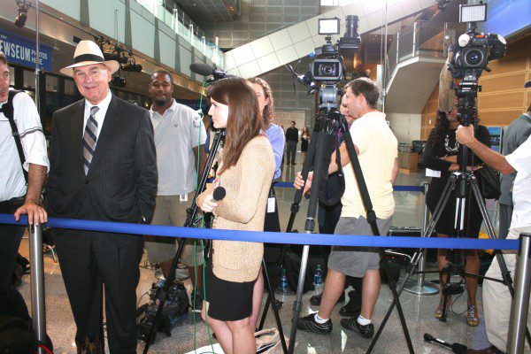 For the throngs of press awaiting the arrival of Will Ferrell and Zach Galifianakis at The Newseum for the …