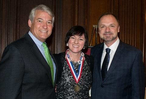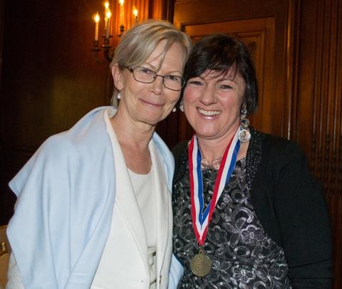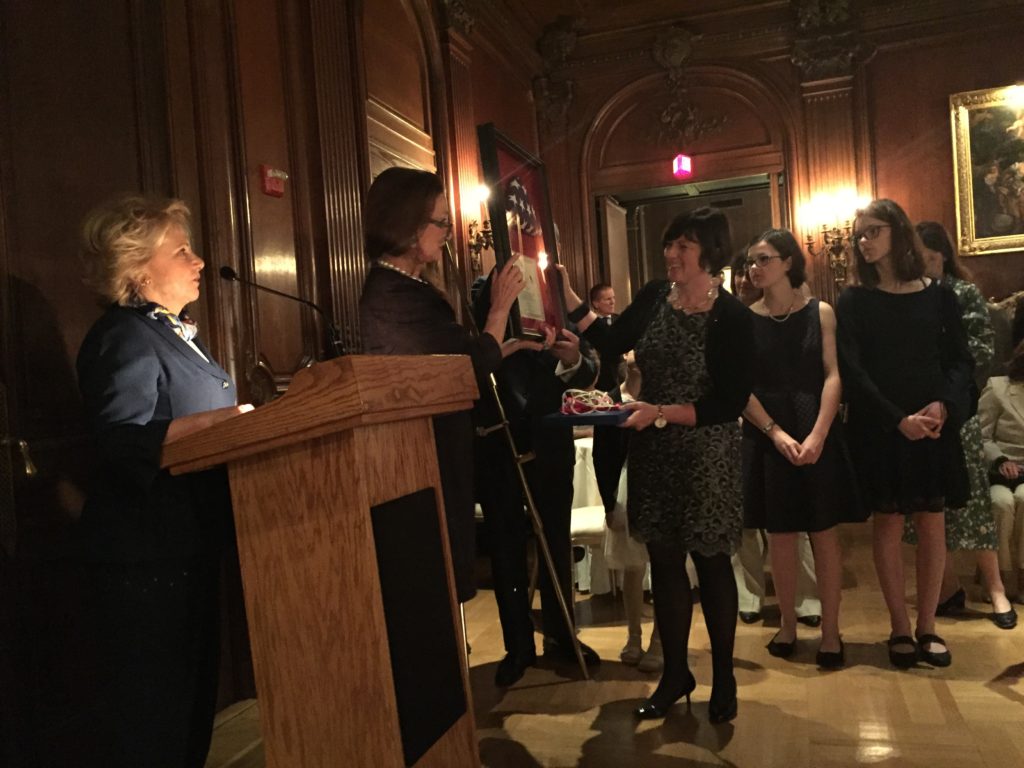 Distinguished guests included Chief of Protocol Rosemary Pauli, The Ambassador of Japan, Croatia, Kosovo, Finland, Austria, Italy and Jordan and Farenc Koszorus who represented 110th year of our organization, the American Hungarian Federation. “Our federation over all of those years has been a strong, strong supporter of good bilateral relations between Hungary and the United States. In fact, we adopted the motto “Fidelissimus ad Mortem,” “Faithful Unto Death,” from Colonel Kovats, who penned the letter to Benjamin Franklin during the Revolutionary War, who offered his services, trained the US Cavalry, known as the father of light cavalry and died in the Battle of Charleston in 1779. Our federation has an award that we’ve developed replicating that and adopting that motto, and our wonderful hostesses are recipients of previous medals, Kovats medals, and it is our pleasure to present the American Hungarian Federations’ Kovats medal to you. We really appreciate the tremendous amount of work you did to help develop and work for better relations between the two countries.”