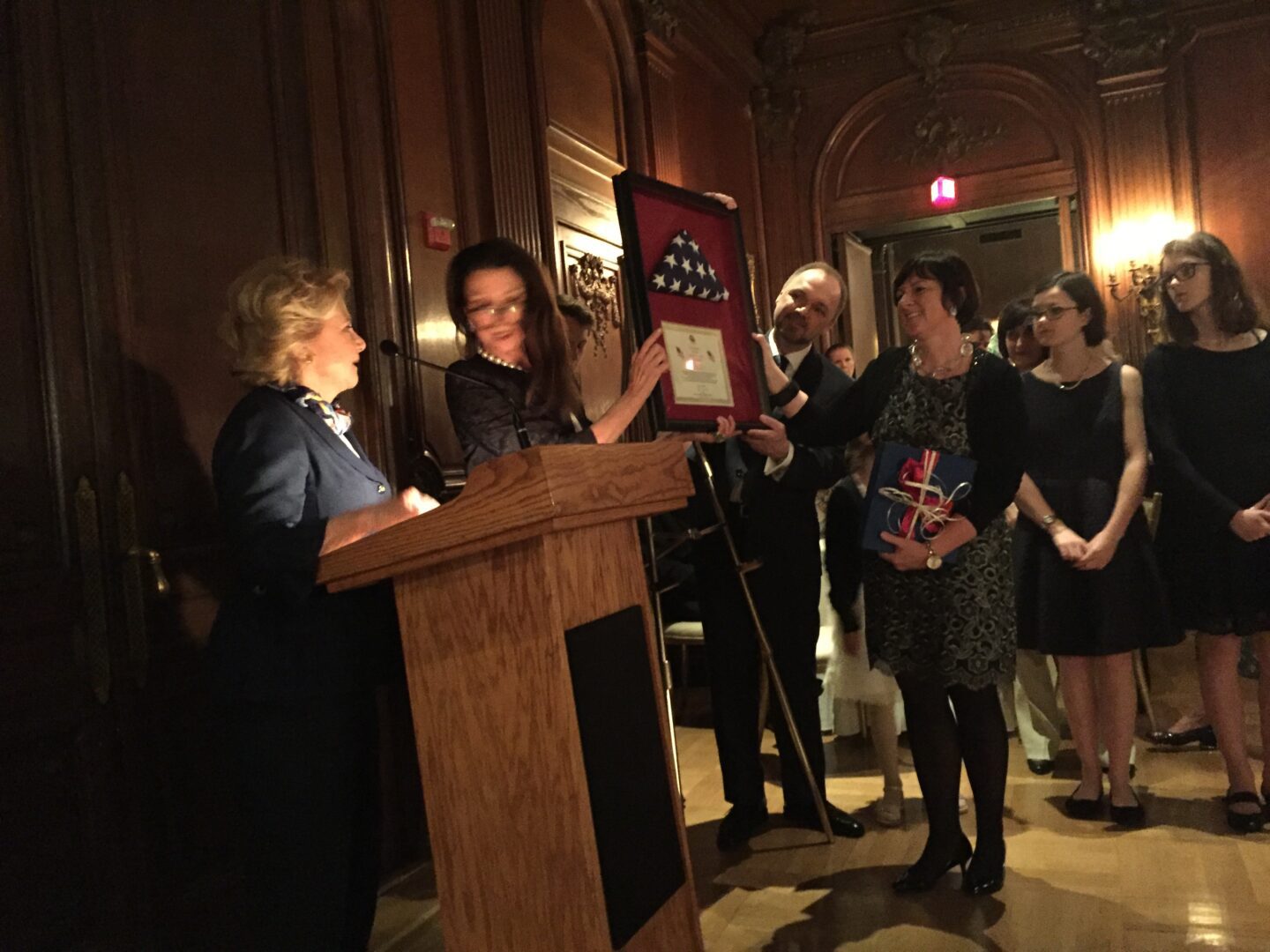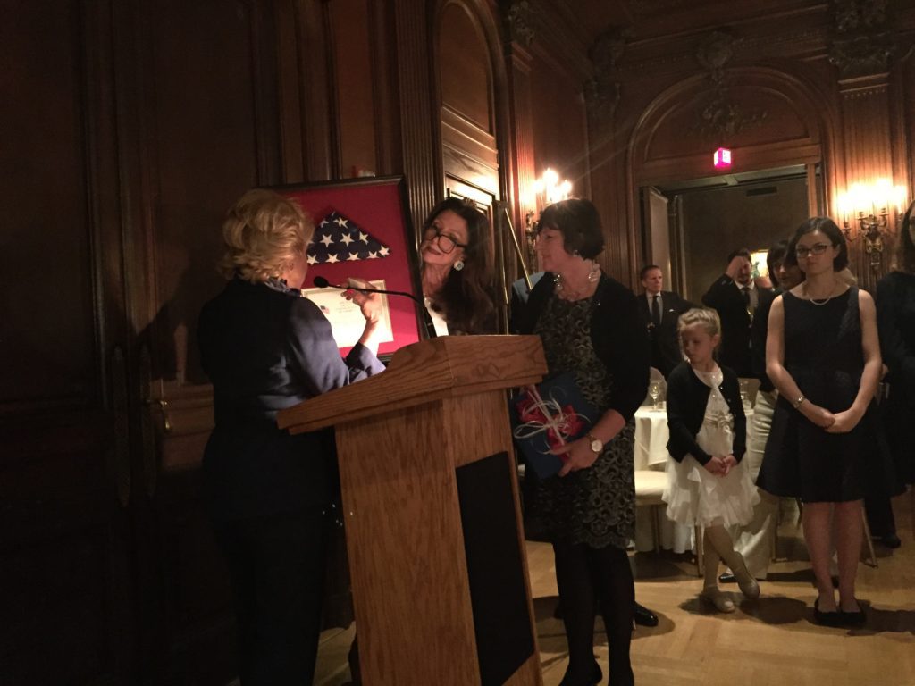 “It’s a testament to your success of your tenure that there’s so many people here tonight to honor you,” said co-host Mary Mochary. “You are not only a wonderful Ambassador but a wonderful friend, generous to every organization that asks you for help. You’ve been just amazing and I’d like to present you with this little tray from the United States Senate.”