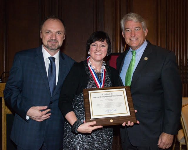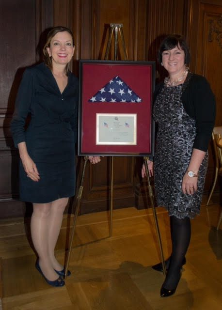 Congressman Ed Royce, Chairman of the Joint Relations of the Congress who was represented by his wife Marie, presented a flag that was flown over the United States in honor of Réka so she can take it home with her and remember how highly she was regarded here in America for all her great deeds and her wonderful representation of Hungary. It says, “At the request of the honorable Edward Royce, members of Congress, this flag was flown in honor of Her Excellency Szemerkényi of Hungary in recognition of your diplomatic service to the United States. We appreciate our friendship and wish you success in your future endeavors. Thank you for including us in the sixtieth anniversary of the Hungarian Revolution. Warmest regards, Ed Royce, Chairman of the Foreign Affairs Committee.”