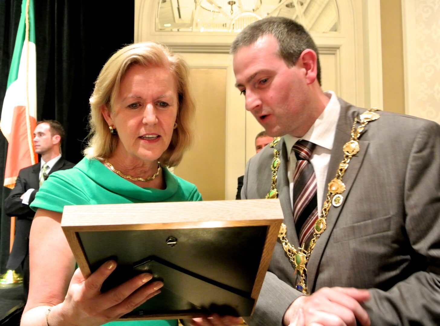 No one had any trouble finding the Whiskey at the St. Patrick’s Day Reception at the The Fairmont Hotel on the occasion of the visit of An Taoiseach (translation: Prime Minister) Enda Kenny T.D. hosted by Anne Anderson, The Ambassador of Ireland.