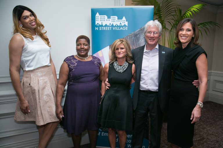 Erna and John Steinbruck Award recipients Courtney Hayes and Rose Shaw pose with actor Richard Gere and Schroeder Stribling, N Street Village Executive Director, at the 2016 N Street Village Gala on March 15, 2016 in Washington, DC. (Paul Kim/N Street Village)