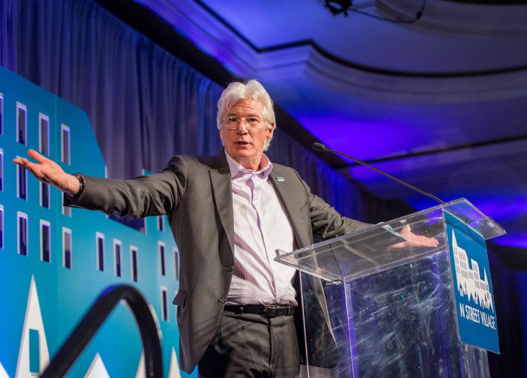 “Compassion is the sympathetic feeling that you’re suffering and that I want you to be separated from that suffering,” said Gere. “I feel it, I acknowledge it, I’m here, I have presence with it and I want you to be separated from that suffering. I will be an agent for you to be separated from your suffering. That’s what I felt walking though that place today, a bunch of people who have made the commitment to do the best to separate you from suffering. That’s extraordinary. I don’t know how many connections you have, but money that you’re giving to this organization feeds directly into that universal sense of responsibility and I thank all of you for that.”