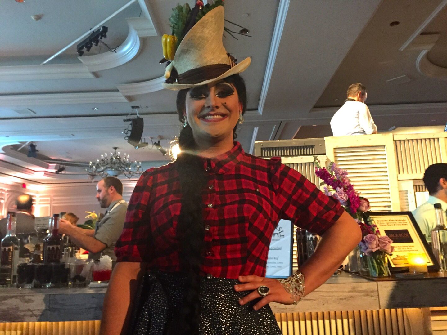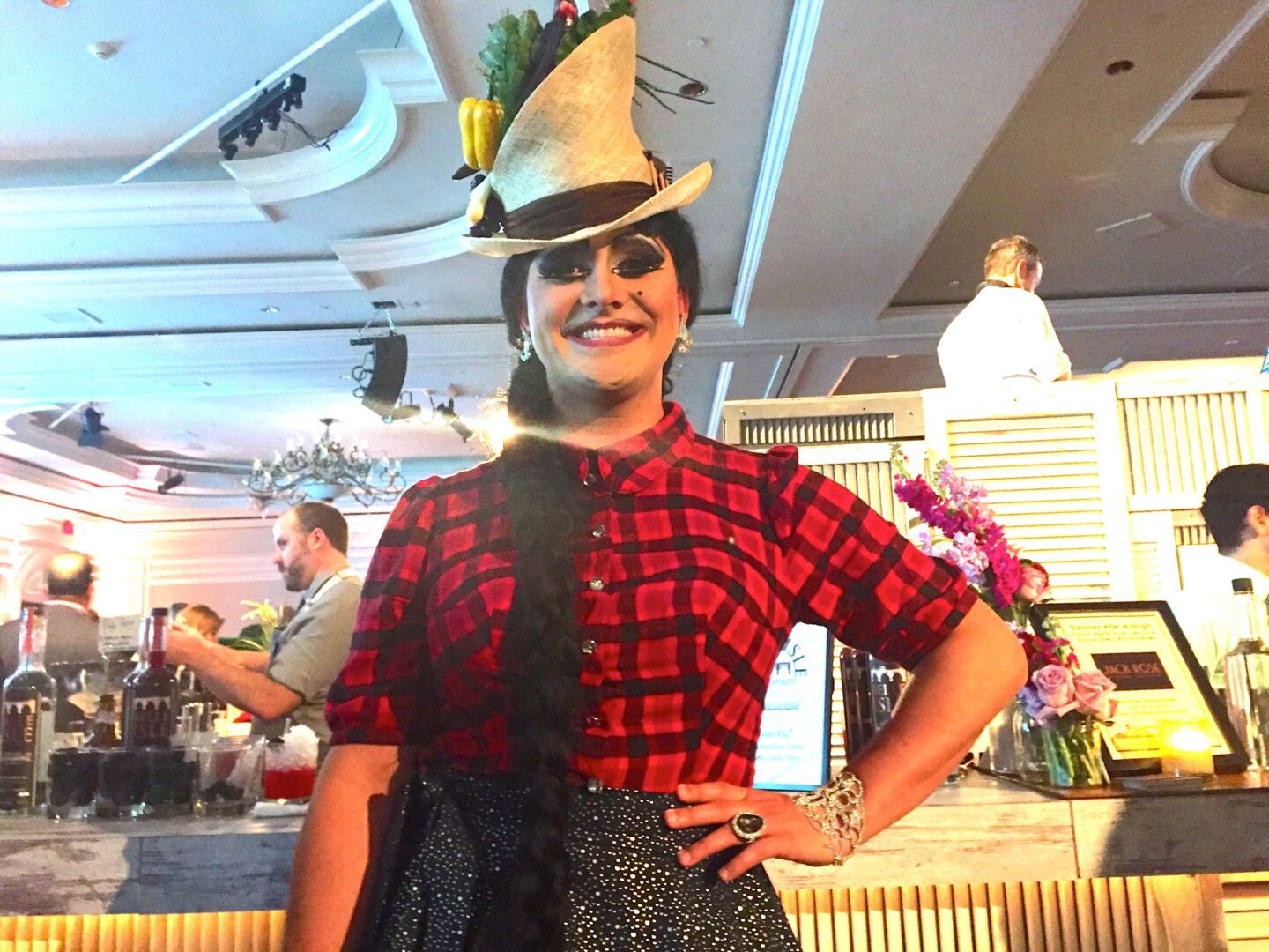 “I’m with Edible DC Magazine; a local food magazine and I volunteer every year for this event in drag ….. so I come over to help and it’s a great opportunity. I just love seeing all the chefs and bartenders come out to support equality.” Had he not been in drag, we may have recognized him; but that not being the case, here is the photo – let the I.D. contest begin.