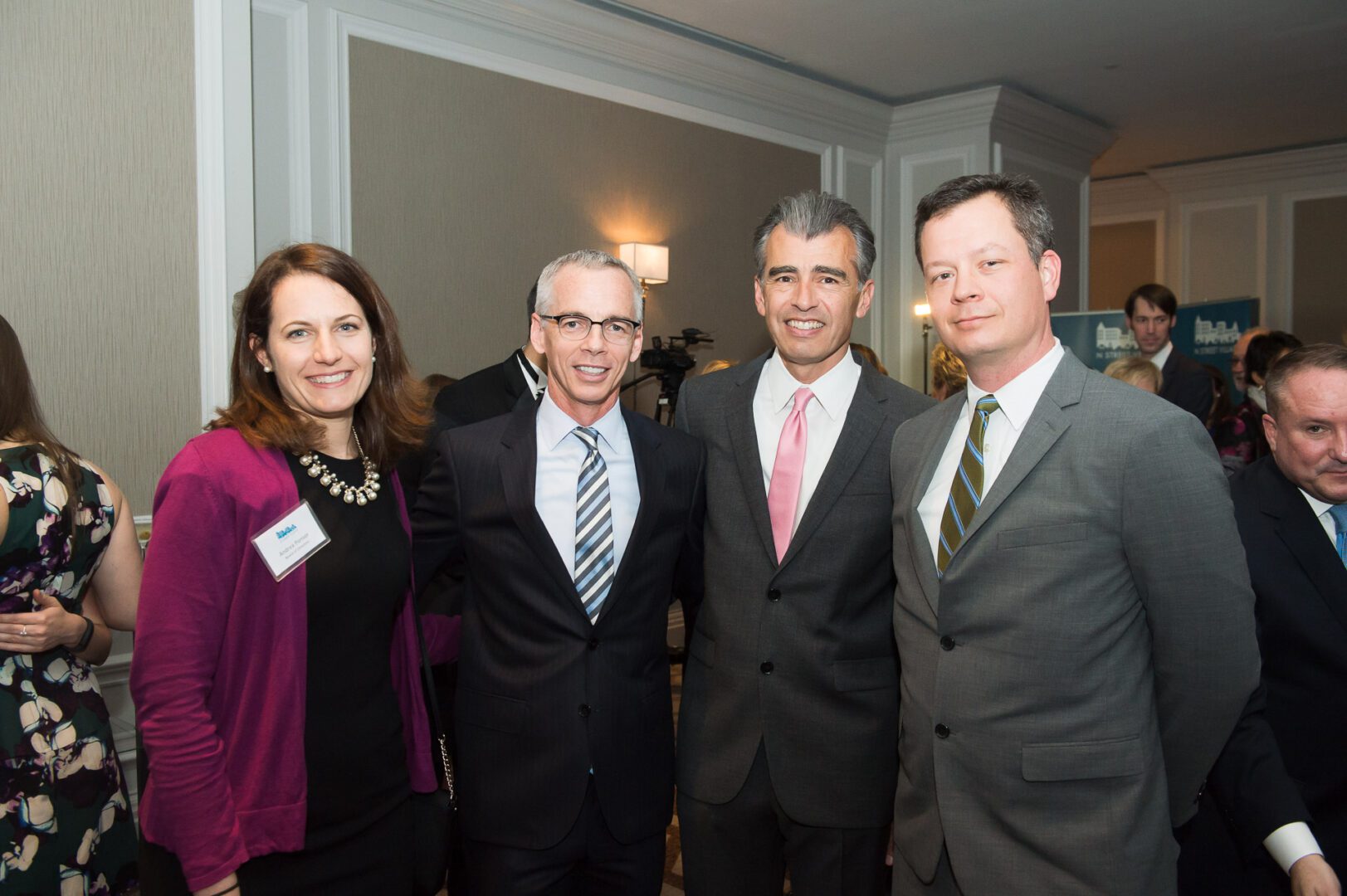 Erna and John Steinbruck Award recipients Courtney Hayes and Rose Shaw pose with actor Richard Gere and Schroeder Stribling, N Street Village Executive Director, at the 2016 N Street Village Gala on March 15, 2016 in Washington, DC. (Paul Kim/N Street Village)