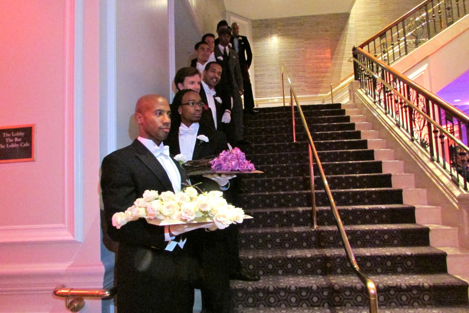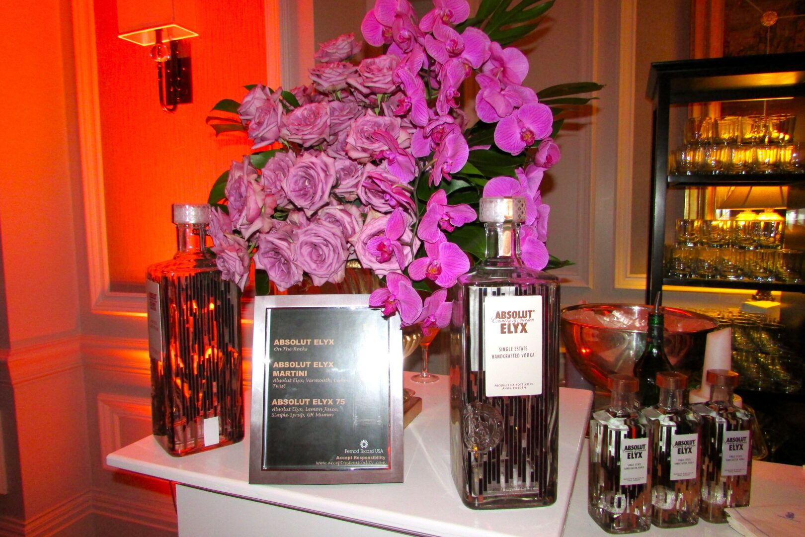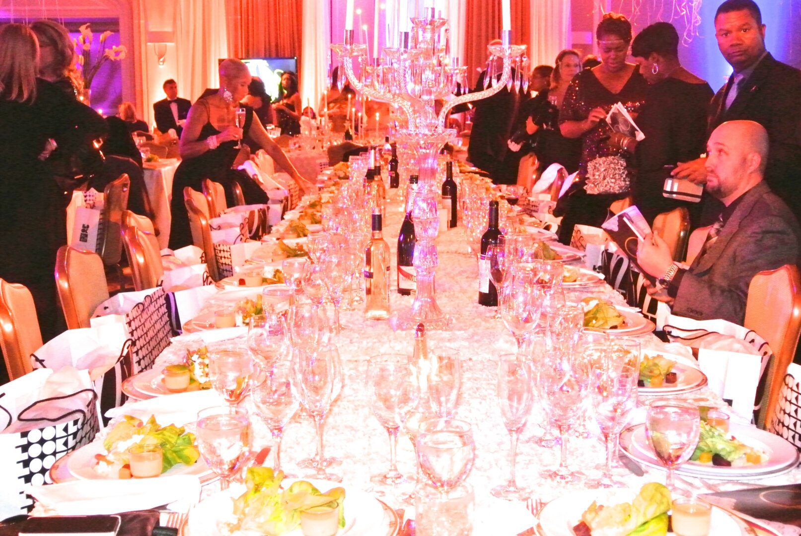 Guests were greeted with flowers, music and champagne which complimented the dining room decor of matching candelabras, chandeliers and stemware.