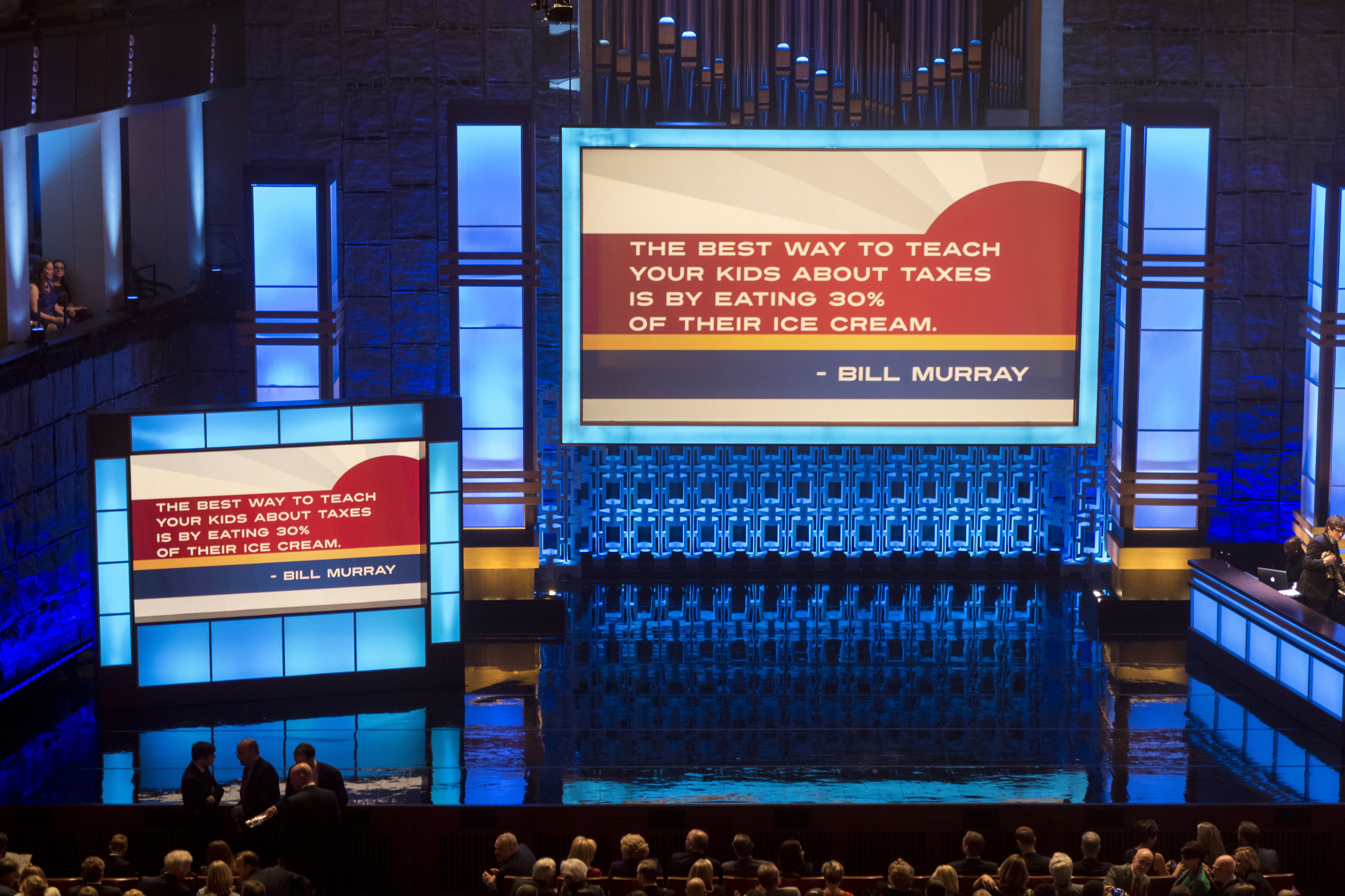 As guests of presenting sponsor Capital One at the performance and after-party, Hollywood on the Potomac enjoyed a night of celebrating Bill Murray and his films through the years, as the house band warmed up the crowd with the theme from Ghostbusters. Kennedy Center Chair David Rubenstein came out to open the night and noted that the evening would be a nice change as “humor not related to political campaigns,” and as the election cycle enters the final stretch, that type of reprieve might be just what we need. Amen to that!