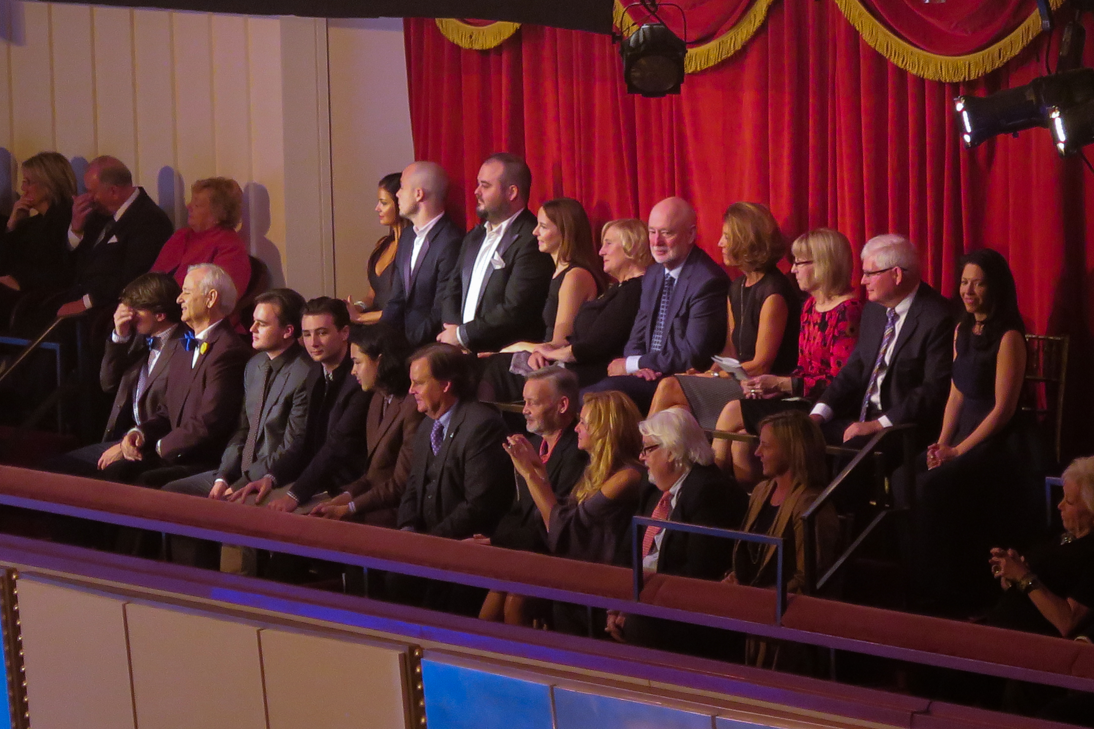 When it was time for Bill Murray to finally claim his prize, the most apparent thing was how much he wanted to be a part of the evening from the beginning rather than sitting on the sidelines. Murray couldn’t help but shout out from his balcony seat because Bill Murray is not a sideline player–he participates in anything he does. Bill is known for randomness and engaging with strangers but in front of an audience, armed with jokes is his home. He stumbled around how he tries to tune out social cues and tripped on his own description of how he was coming up speechless at the thought of being honored. Bill was sincere though in saying that his older brother, Brian Doyle Murray, paved the path for him by getting into Second City in Chicago before he did. Bill said his brother “had more guts than anyone I knew and the only reason I’m here is because of the guts of my brother Brian.”