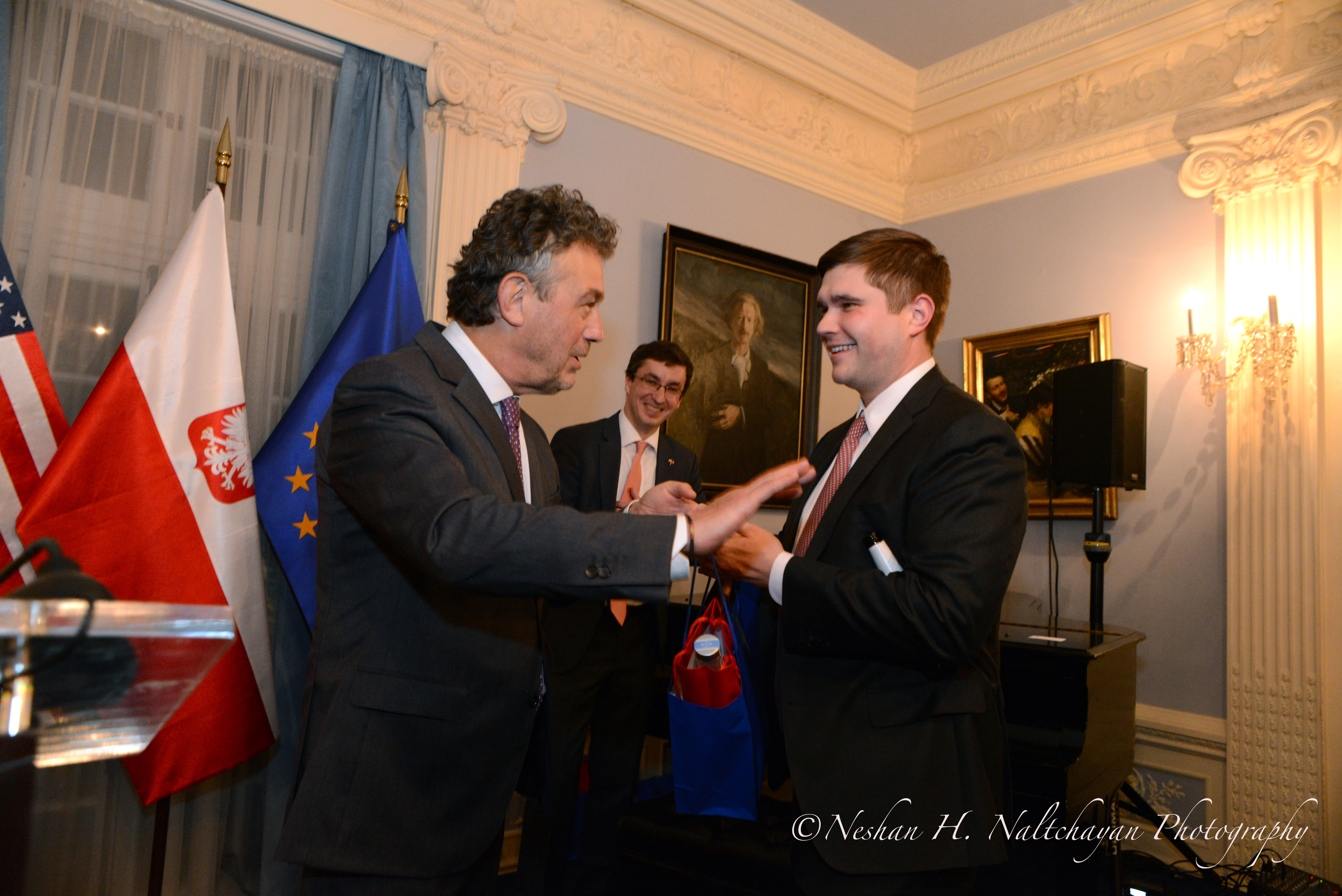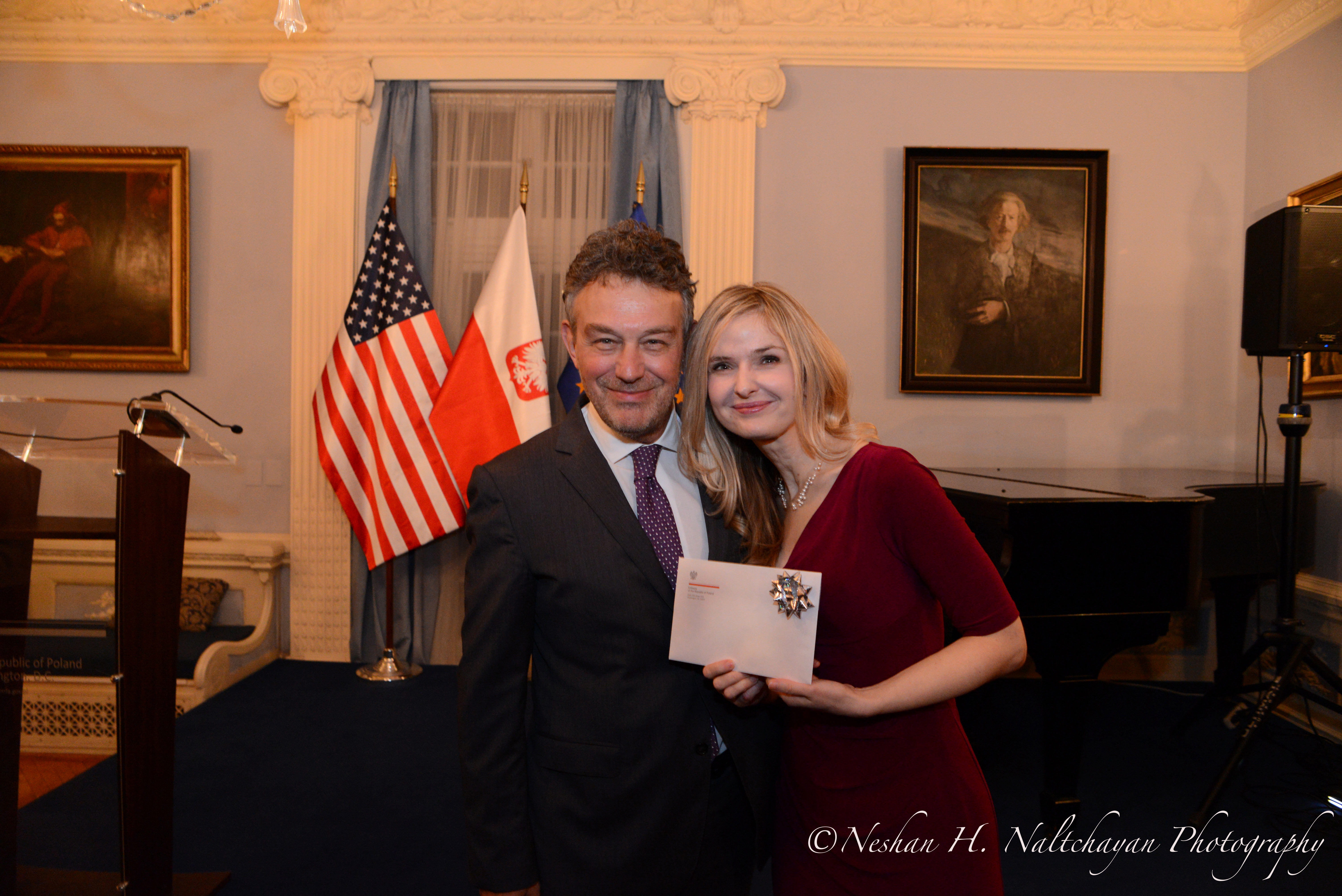 Guests enjoyed specially drinks and holiday cuisine prepared by Embassy chef Andrzej Bielach after a raffle when prizes highlighted Polish literature, arts, cuisine, music and travel destinations. The Grand Prize came courtesy of Mr. Marcin Gortat and his MG13 Foundation and included two tickets to an NBA game as well as the opportunity to meet the Washington Wizard Center and Poland’s only NBA player post the game.