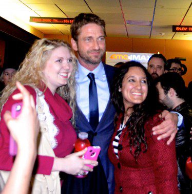 Butler was in town for the Washington premiere of Olympus has Fallen in March shown here surrounded with fans at the Georgtown screening.