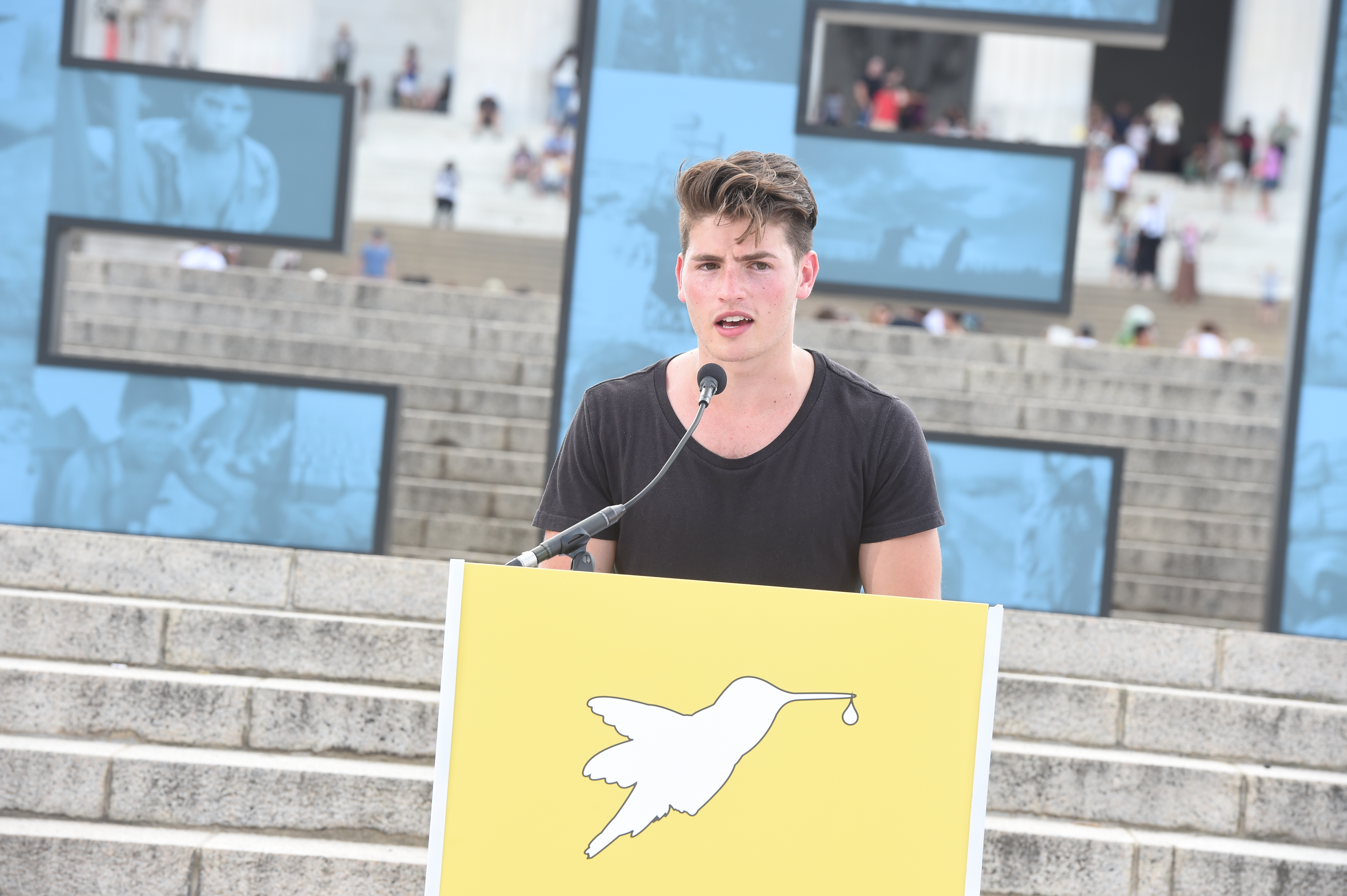 Eight foot letters spelled the word “FREEDOM” against the backdrop of the Lincoln Memorial and as the event closed, the word “FREEDOM” illuminated marking the 157th anniversary of President Lincoln’s House Divided speech.