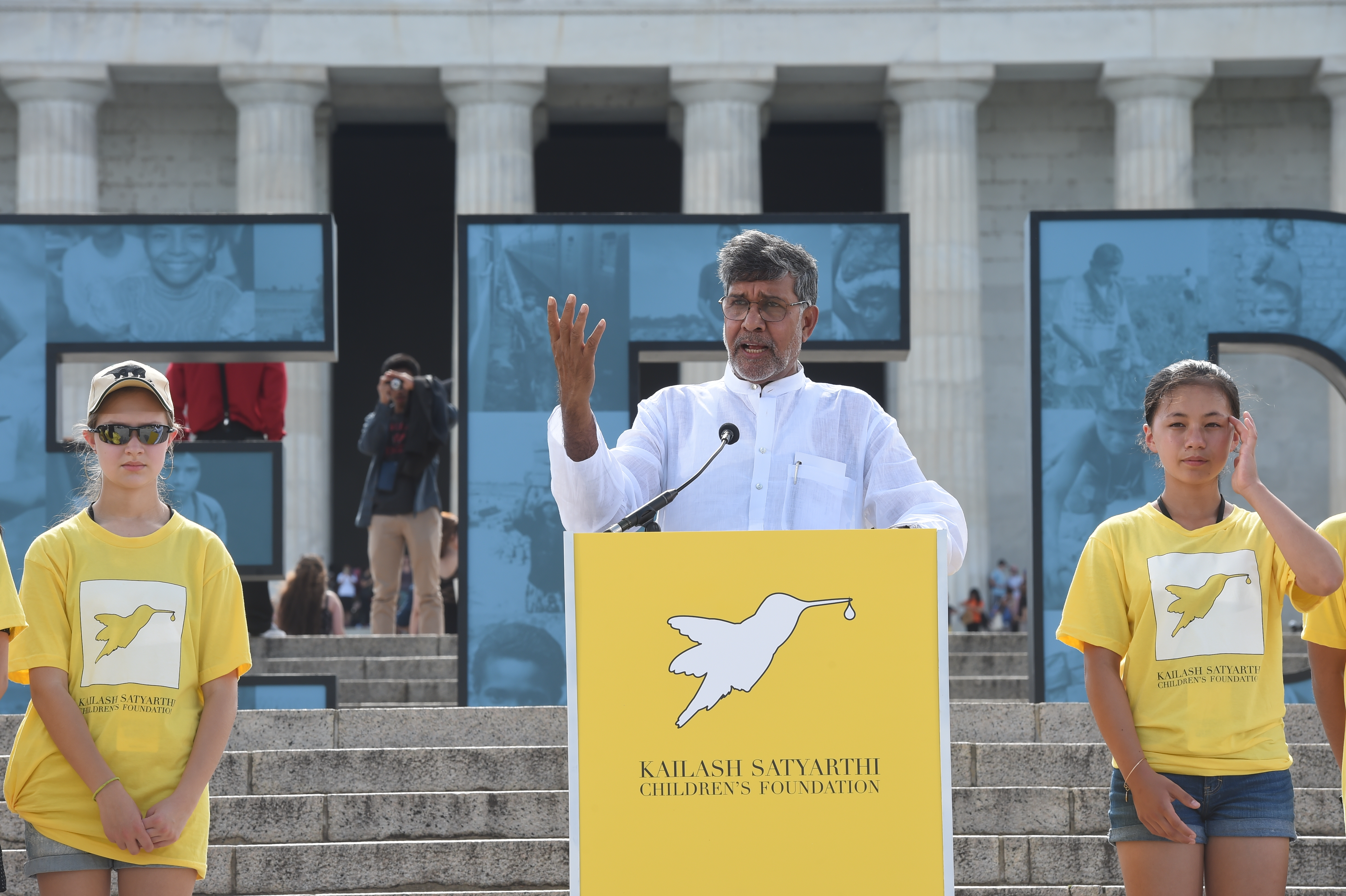 “Lincoln Memorial is a place of inspiration for everyone,” 2014 Nobel Peace Prize laureate Kailash Satyarthi told Hollywood on the Potomac just prior to a special meet up on the steps of the Lincoln Memorial pronouncing freedom for the world’s children on the 157th anniversary of President Lincoln’s famous “House Divided” speech. “President Lincoln has become the symbol for human emancipation and freedom; that’s why the Lincoln Memorial is very important for any fight against child slavery or any form of slavery and exploitation. Martin Luther King also made a historic contribution.”