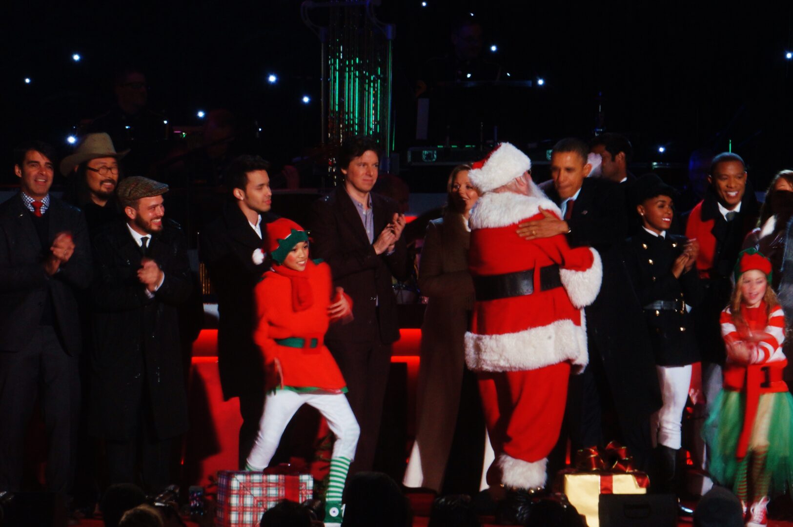 When the President took to the stage everyone perked up to his joyous greeting of “Merry Christmas everybody.” He noted that he rehearses his own singing act just-in-case, but that it’s probably best to leave the singing to the professionals.