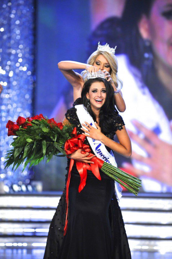 “Ladies and gentlemen, the 90th anniversary Miss America; your Miss America 2011 is… Miss Nebraska Teresa Scanlan!” Above, she …