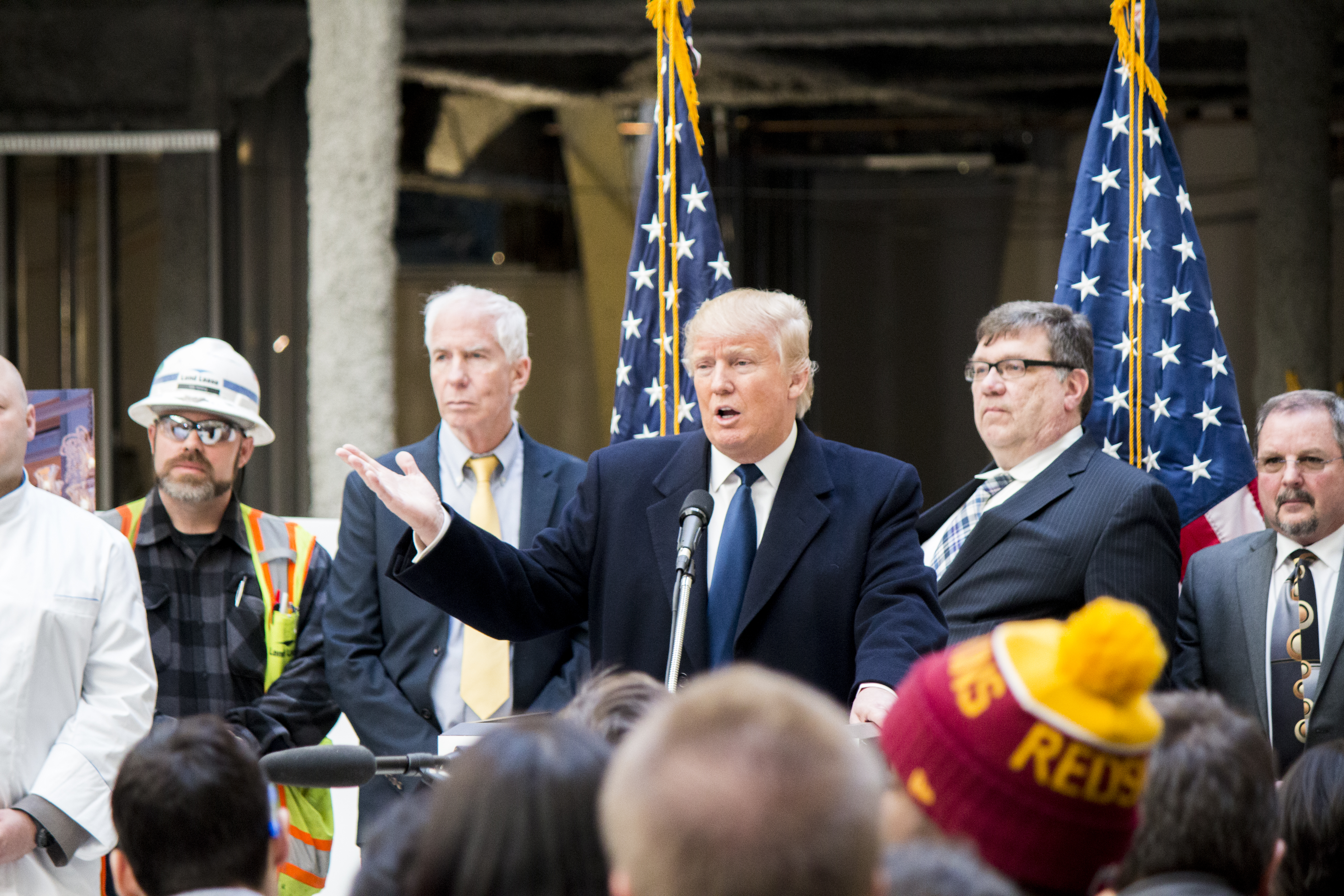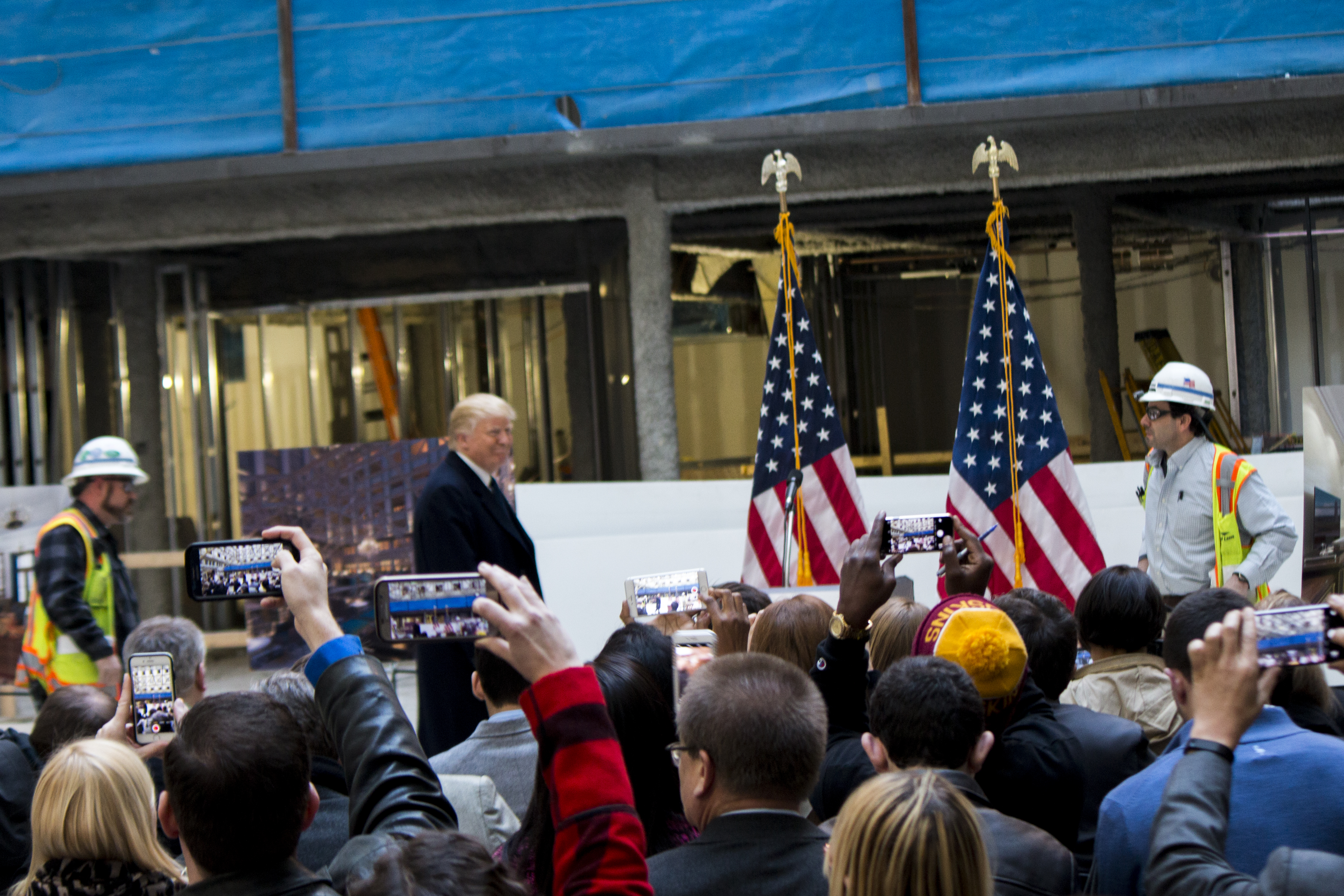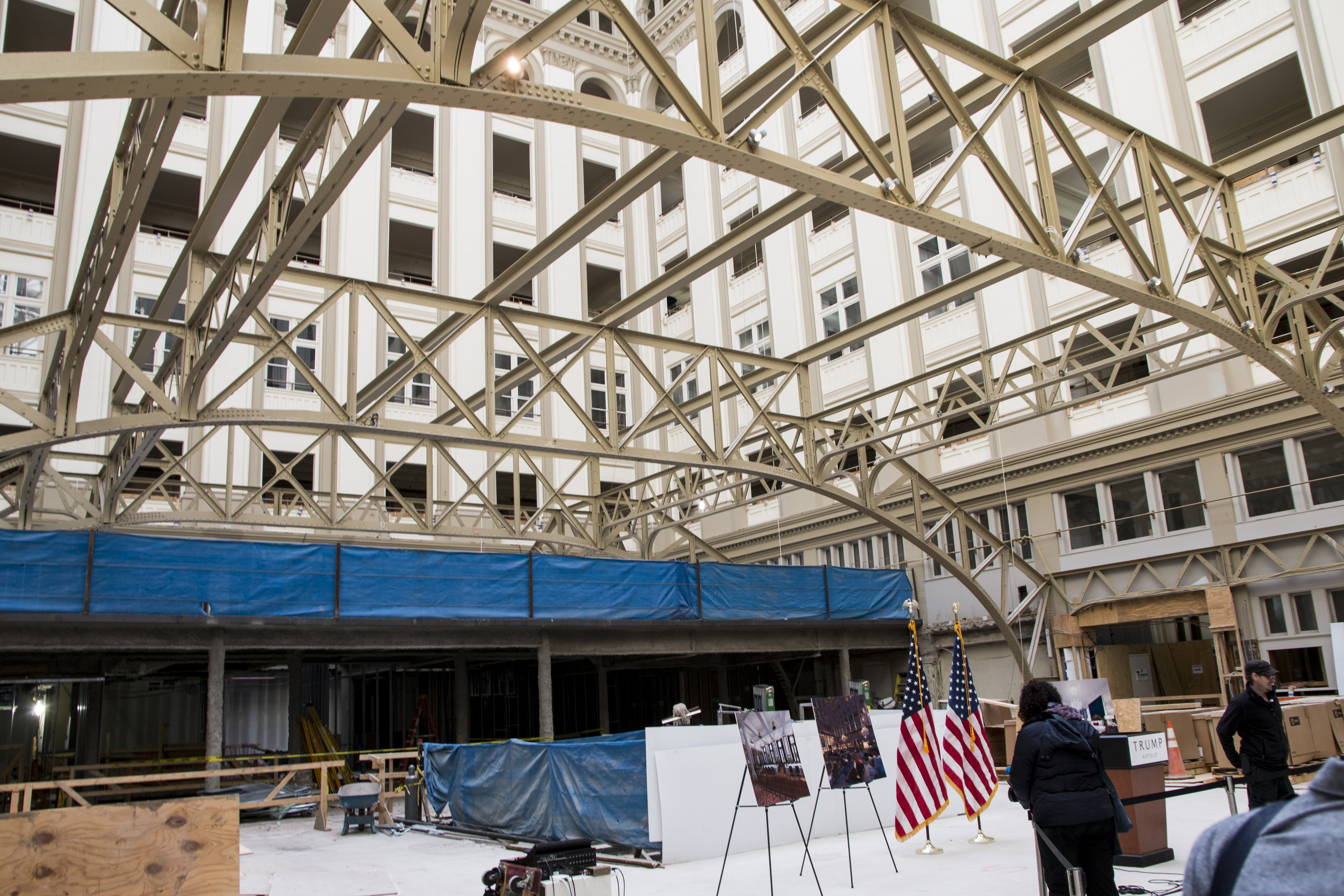The size and luxury of this whole project are squarely in the center of the message grid for what Trump wants people to know about his newest hotel—not that you’d expect much less. When he arrived for the Monday press conference he was joined by a parade of characters to reinforce his whole theme—a chef, a construction worker, front desk agents and future concierges. The hospitality gang stood loyally by behind him in the dusty atrium beneath an impressive glass roof that already signaled promise for the property. “The hotel is going to be incredible,” he said. At first thought, maybe it’s a platitude from a man who doesn’t often underestimate himself, but for those who remember the dank and decaying state of The Old Post Office, the dust on site at this point signals growth in the right direction. “When it’s completed,” Trump added, “it will truly be one of the great hotels in the world.”
