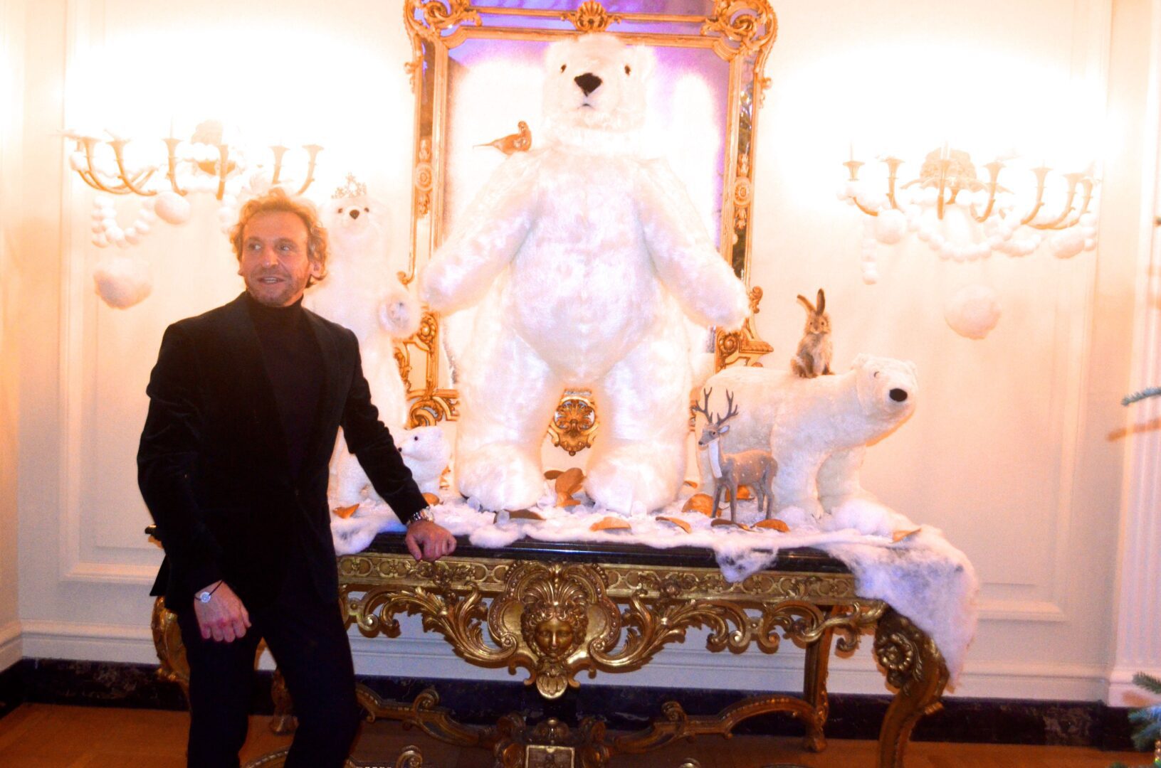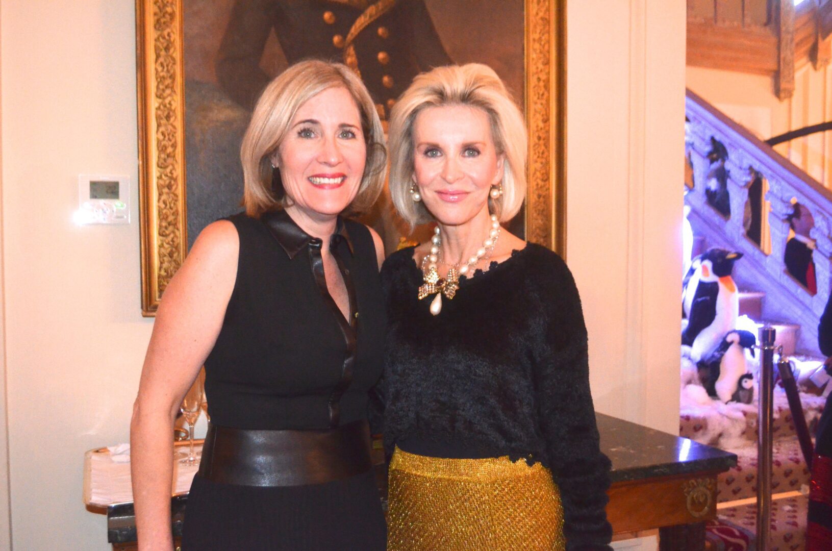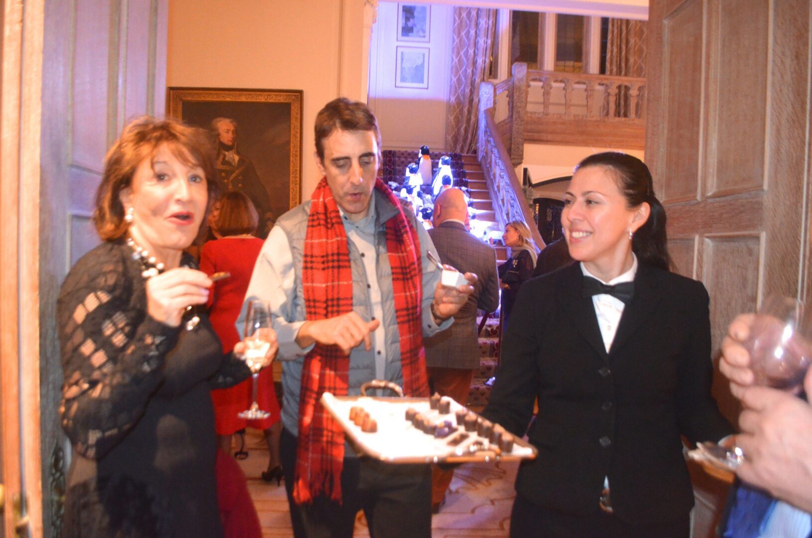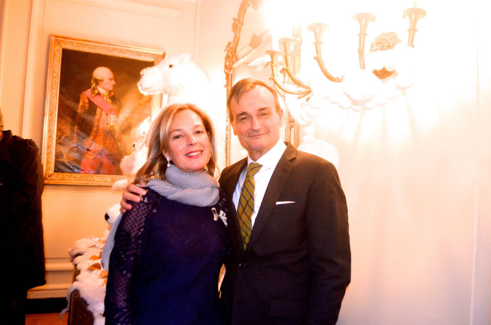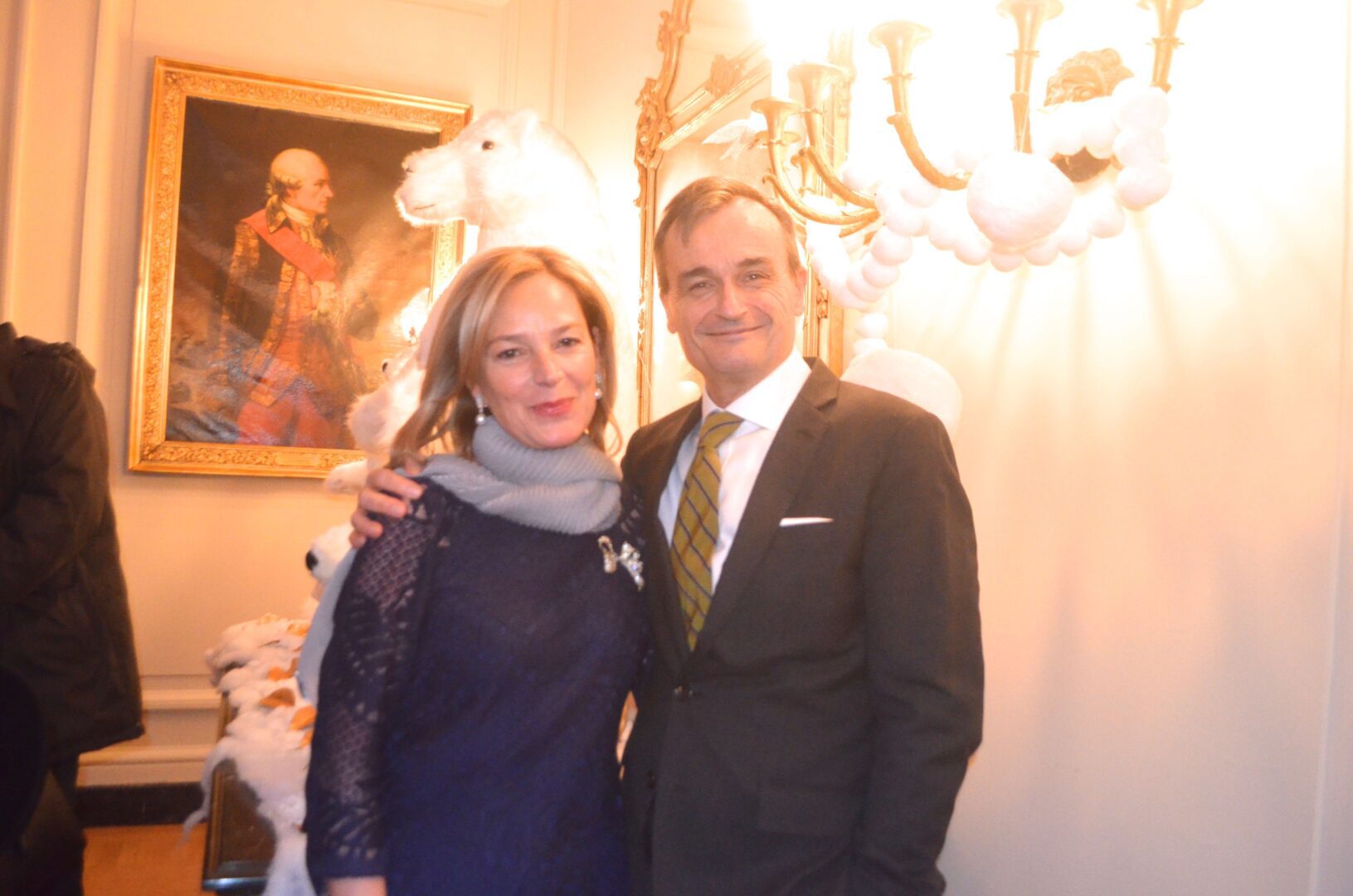 We’re not sure why a flock of Penguins ended up on the staircase at the residence of Gérard Araud, The Ambassador of France, since Penguins – unlike most humans – enjoy sub-zero temperatures and today’s Polar Vortex with air and wind chills that dipped to Siberian levels is paradise for these fabulous creatures. “I did this decor because I wanted to tell a short story about climate change,” artist-photographer Pascal Blondeau told Hollywood on the Potomac. “The first victims of our beautiful planet are Bears & Penguins. I wanted to tell how Ambassador Araud and myself  take climate change seriously. I did this kind of work many times when I was a [sceneographer] at the Museum of Decorative art in Paris.”