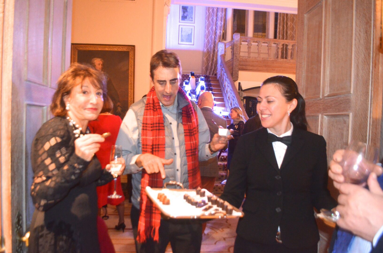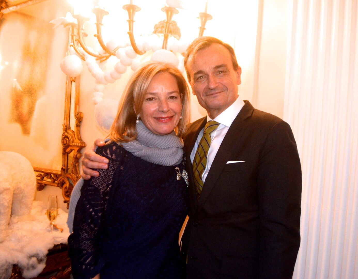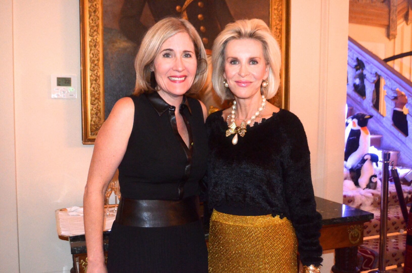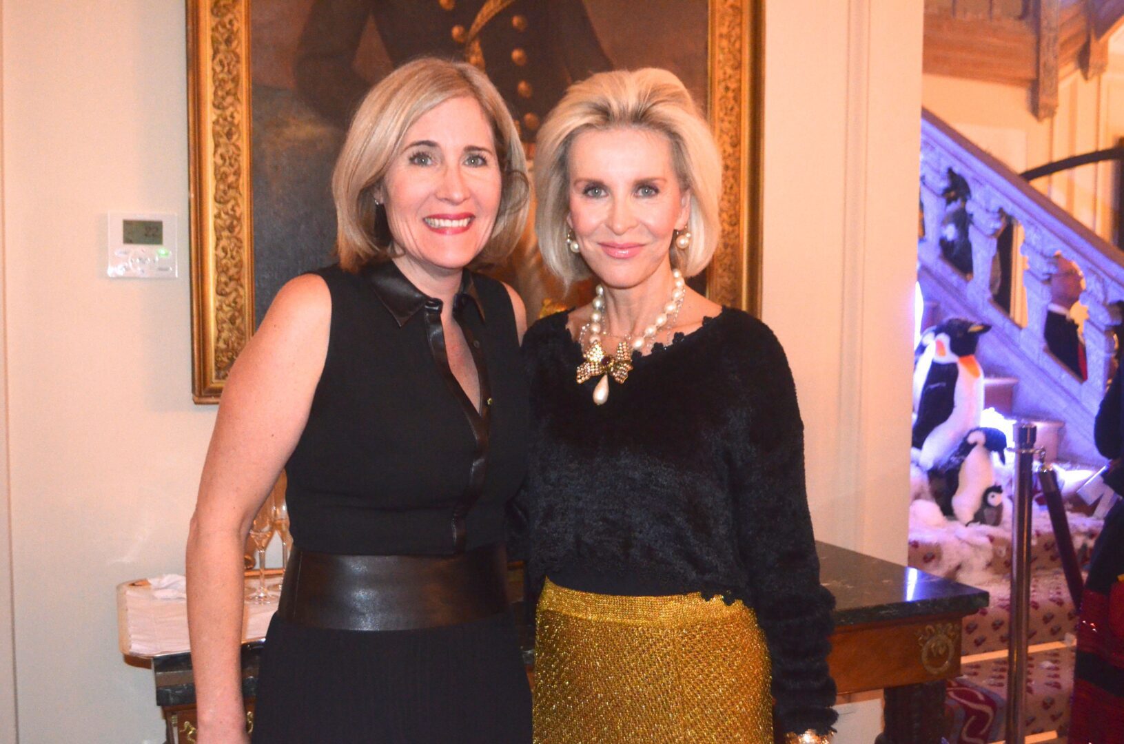 We’re not sure why a flock of Penguins ended up on the staircase at the residence of Gérard Araud, The Ambassador of France, since Penguins – unlike most humans – enjoy sub-zero temperatures and today’s Polar Vortex with air and wind chills that dipped to Siberian levels is paradise for these fabulous creatures. “I did this decor because I wanted to tell a short story about climate change,” artist-photographer Pascal Blondeau told Hollywood on the Potomac. “The first victims of our beautiful planet are Bears & Penguins. I wanted to tell how Ambassador Araud and myself  take climate change seriously. I did this kind of work many times when I was a [sceneographer] at the Museum of Decorative art in Paris.”