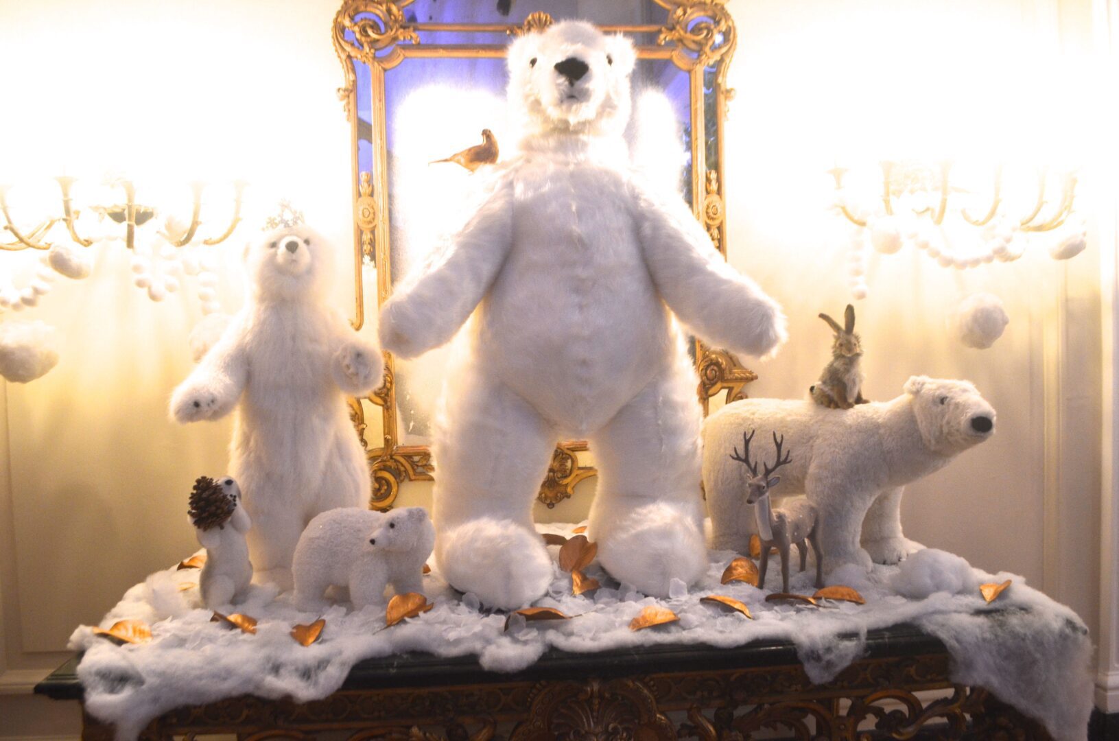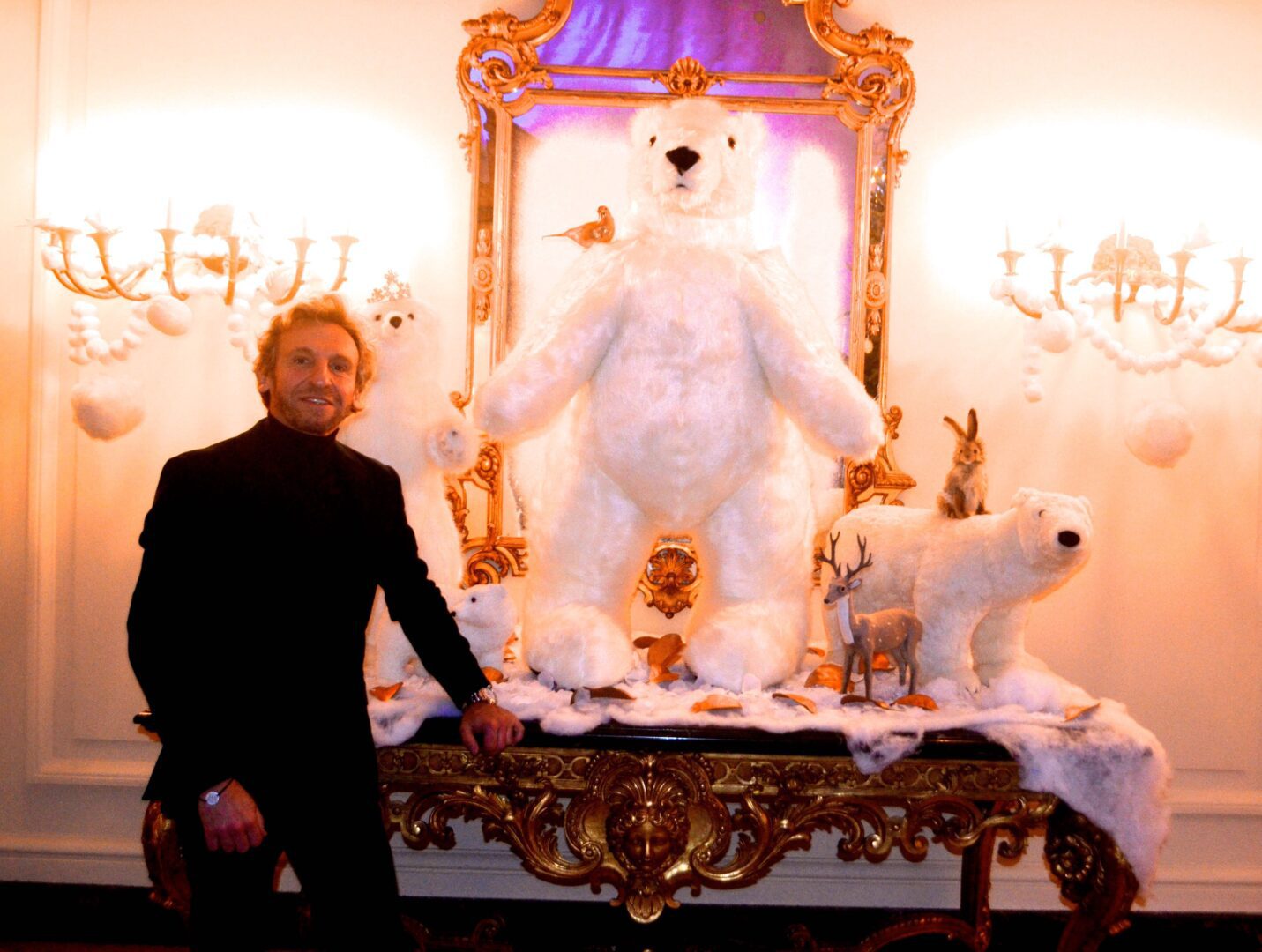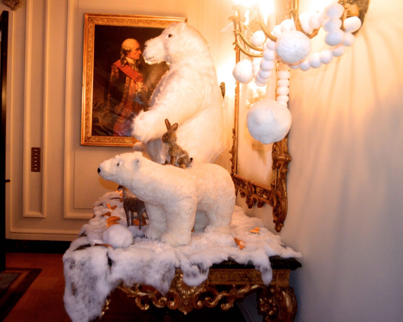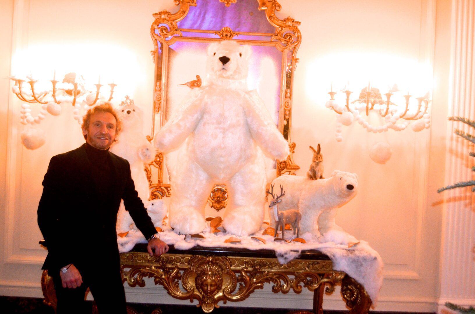 We’re not sure why a flock of Penguins ended up on the staircase at the residence of Gérard Araud, The Ambassador of France, since Penguins – unlike most humans – enjoy sub-zero temperatures and today’s Polar Vortex with air and wind chills that dipped to Siberian levels is paradise for these fabulous creatures. “I did this decor because I wanted to tell a short story about climate change,” artist-photographer Pascal Blondeau told Hollywood on the Potomac. “The first victims of our beautiful planet are Bears & Penguins. I wanted to tell how Ambassador Araud and myself  take climate change seriously. I did this kind of work many times when I was a [sceneographer] at the Museum of Decorative art in Paris.”