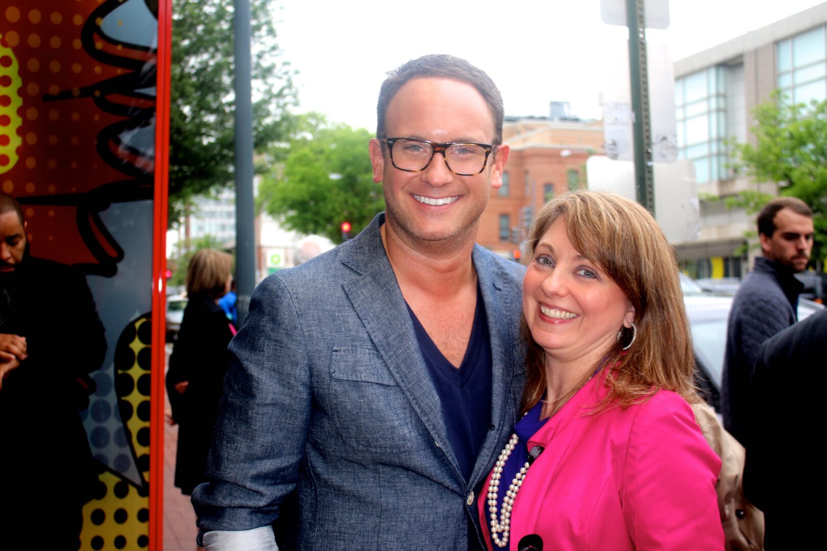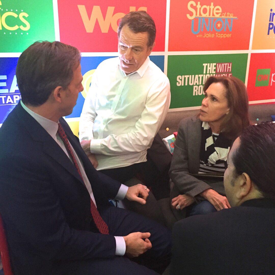 CNN Bureau Chief Sam Feist and his wife Danielle chat with director-producer Jay Roach