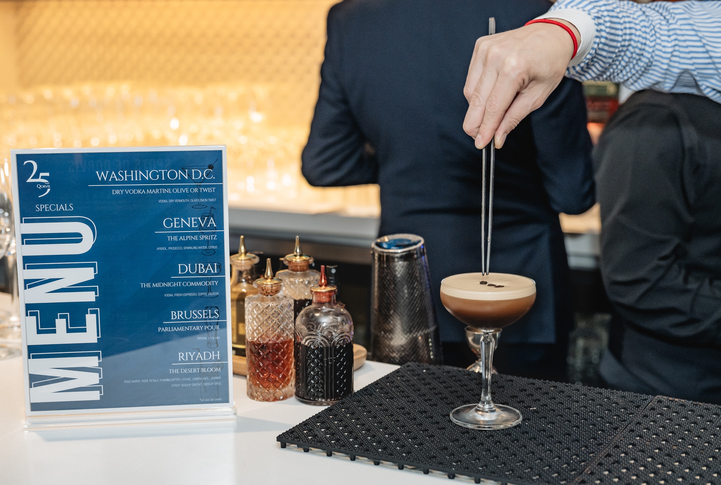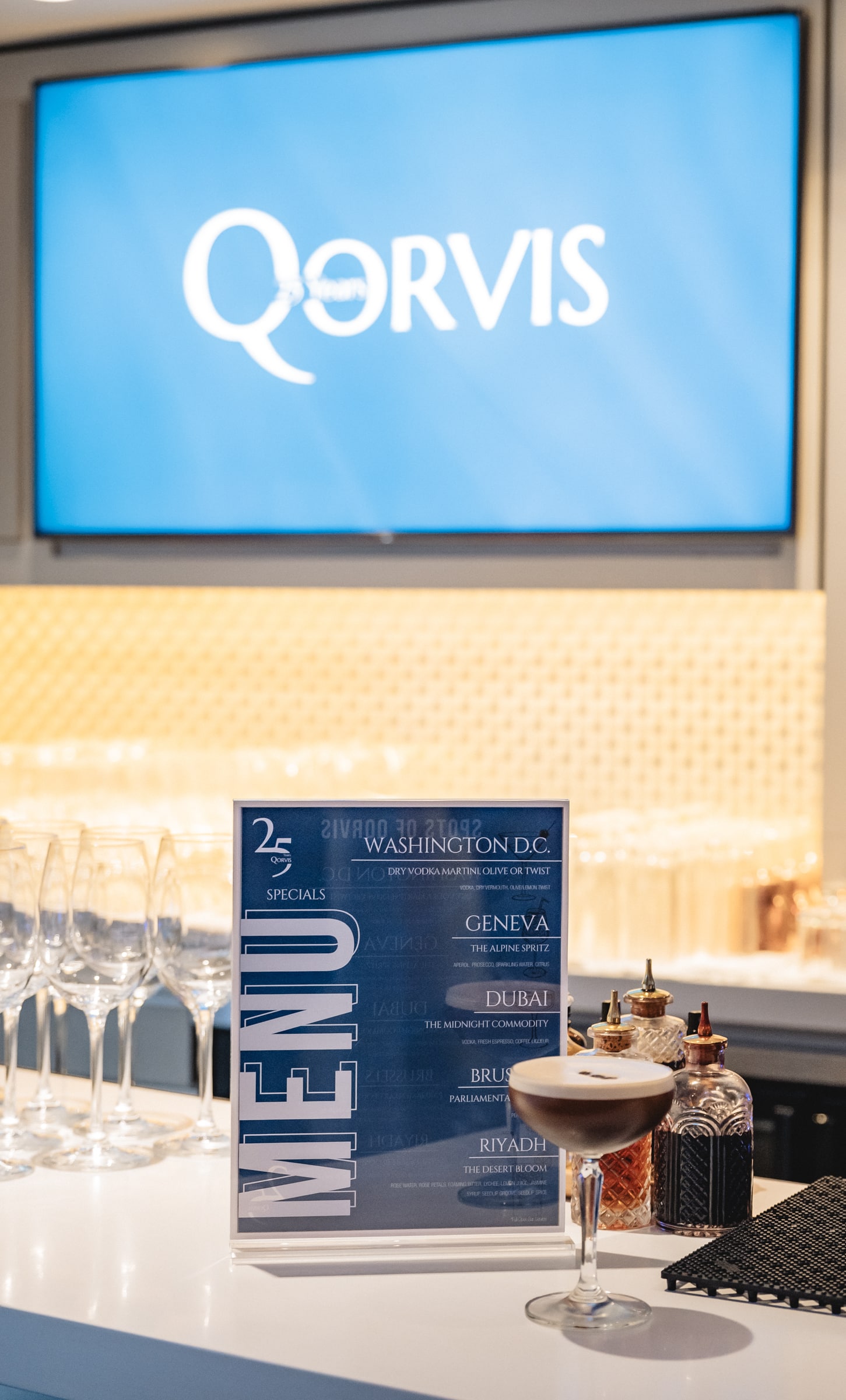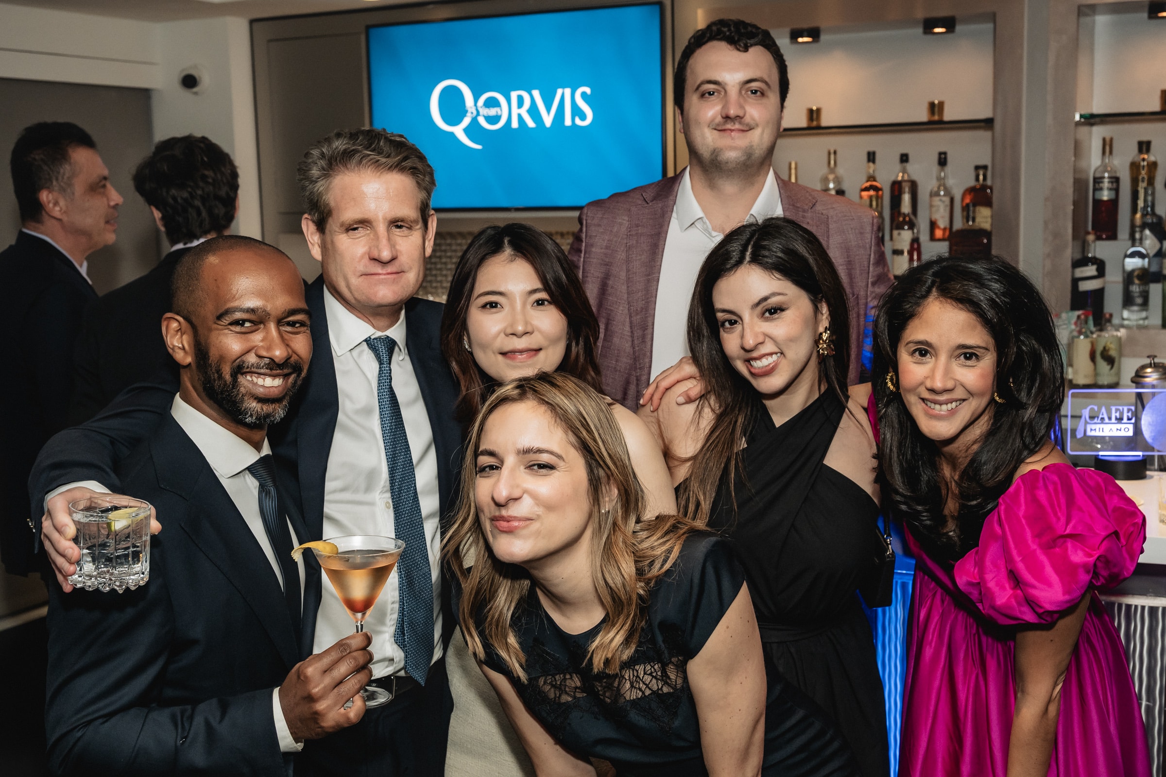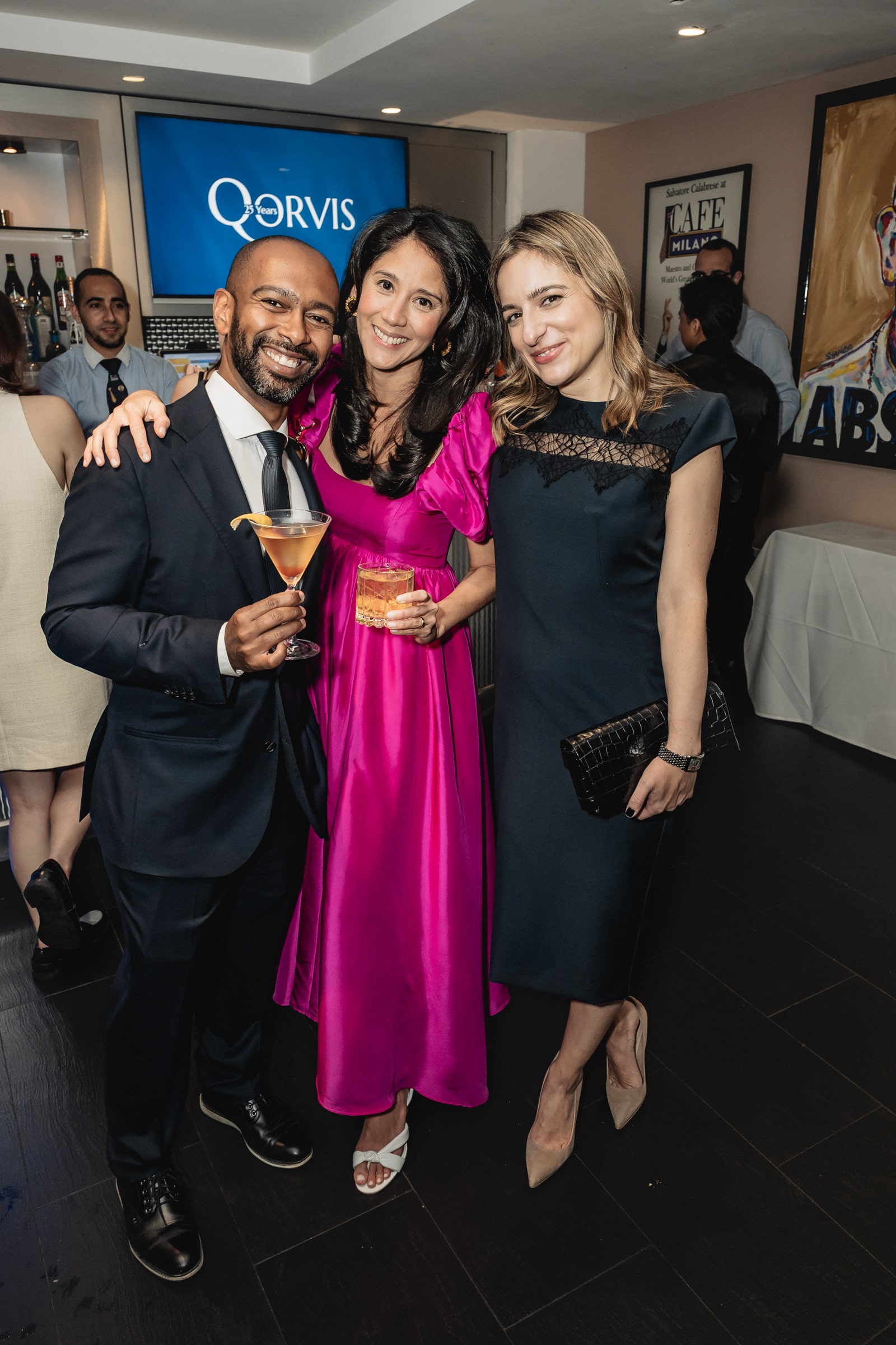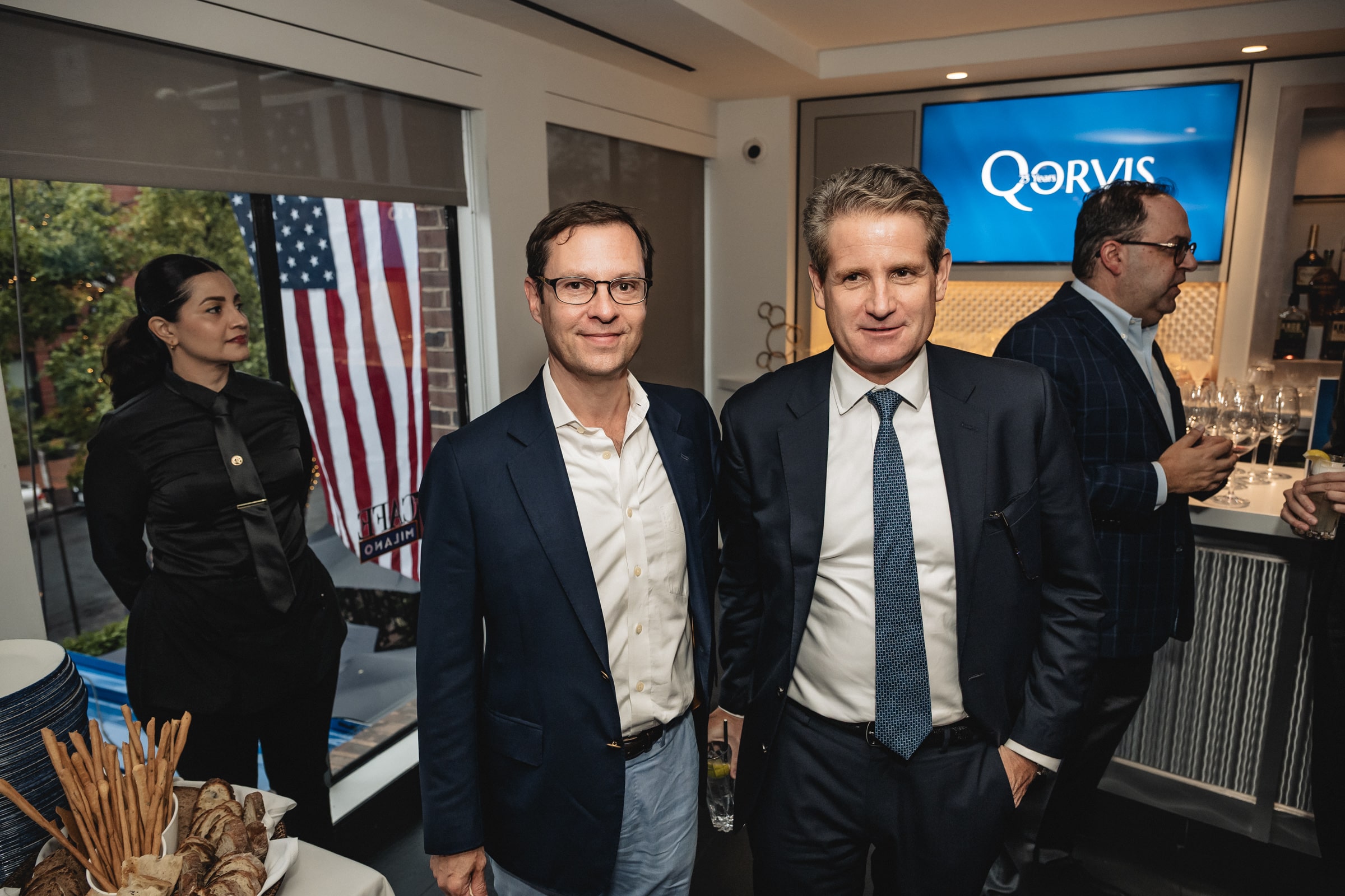 Waiters floated by with trays of Prosecco and jewel-box bites of Italian indulgence — Arancini here, Bruschetta there — while the chatter ricocheted from campaign war stories to whispered forecasts of the next big thing. It was part reunion, part high-gloss networking session, the sort of night where you caught up with an old colleague. Specialty cocktails represented the various locations of Qorvis activity.