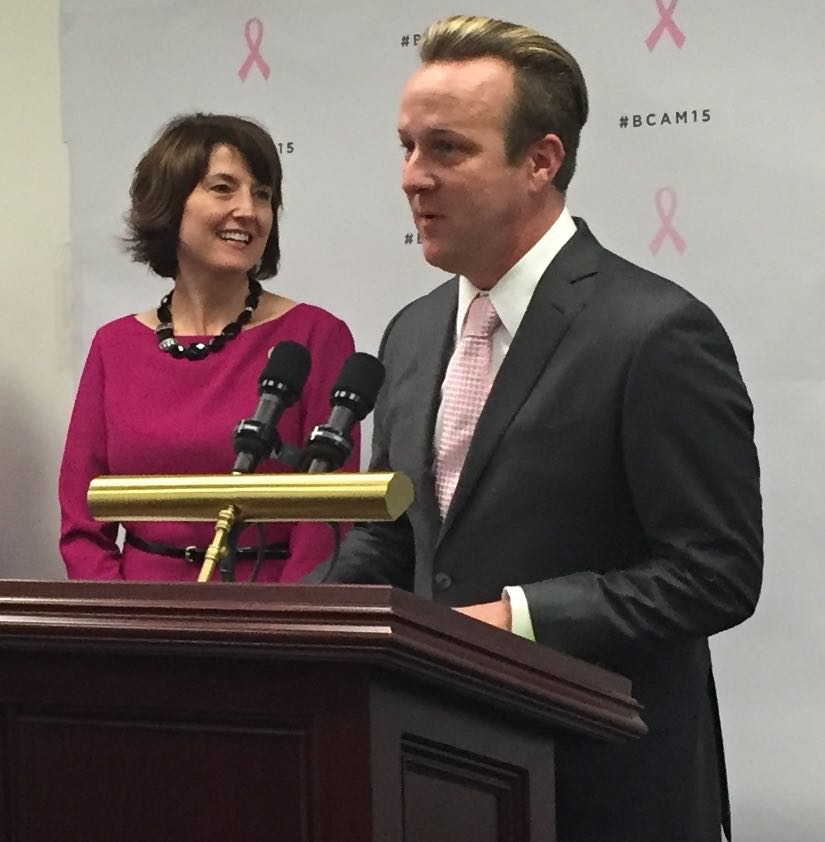“I’m at the Breast Cancer Research Foundation,” Chief Mission Officer Dr. Marc Hurlbert told Hollywood on the Potomac at a reception honoring ABC News’ Cokie Roberts hosted by House Republican Conference Chair Cathy McMorris Rodgers (R-WA) and House Democratic Leader Nancy Pelosi (D-CA). “We’re the leading funder of breast cancer research in the non-profit world, this year and the last several years. We have 240 active projects and several focusing on male breast cancer which is actually quite rare. There is only like one percent of the cases each year – about two thousand cases compared to two hundred and fifty-thousand cases each year in the US for women – so it’s a little rare, but it still needs to be studied. Men don’t get mammograms, obviously, and there is no real {credence} that have been tested. All the clinical trials were done on women early on. So unfortunately for men, breast cancer does happen. It is rare, but we’re not screening for it; so when it happens it occurs late and is quite aggressive and more often than not has already spread to other parts of the body. It’s our long term goal to end breast cancer so we are into research, not only treatment. We need to prevent the disease in the first place.We need to find out what is causing it and then prevent it.”