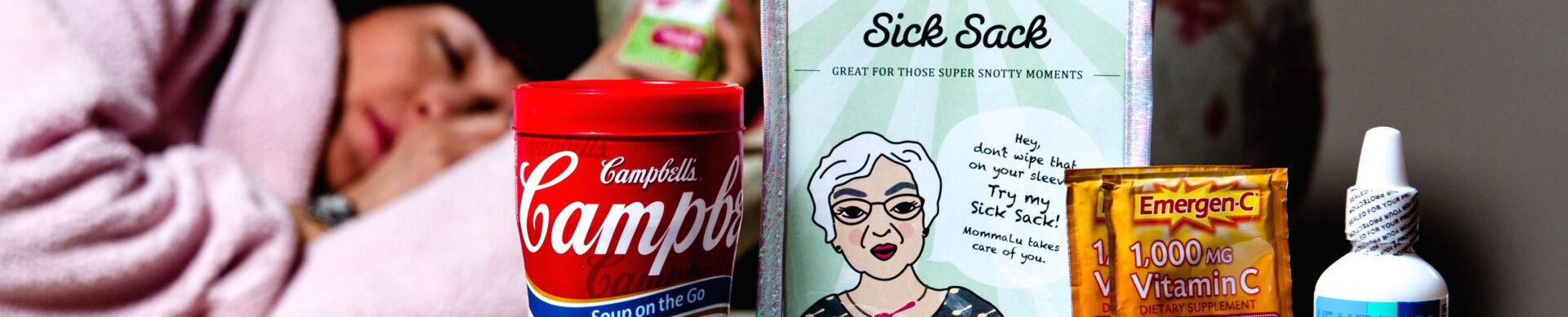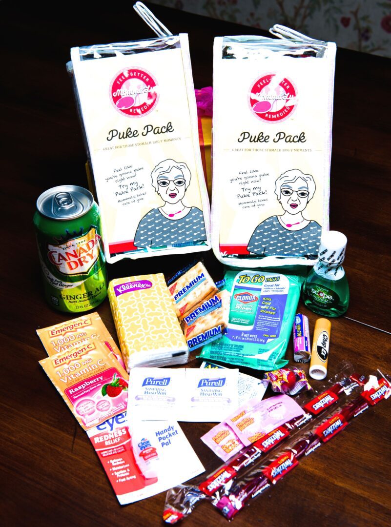 “Each pack and sack is filled with the perfect dose,” MommaLu proprietor Jennifer Jenkins told us. “When you are sick and open your MommaLu “Sick Sack” or “Puke Pack” we want you to use ALL the contents. Don’t leave anything. We believe you’ll feel better if you use everything we provide.”
