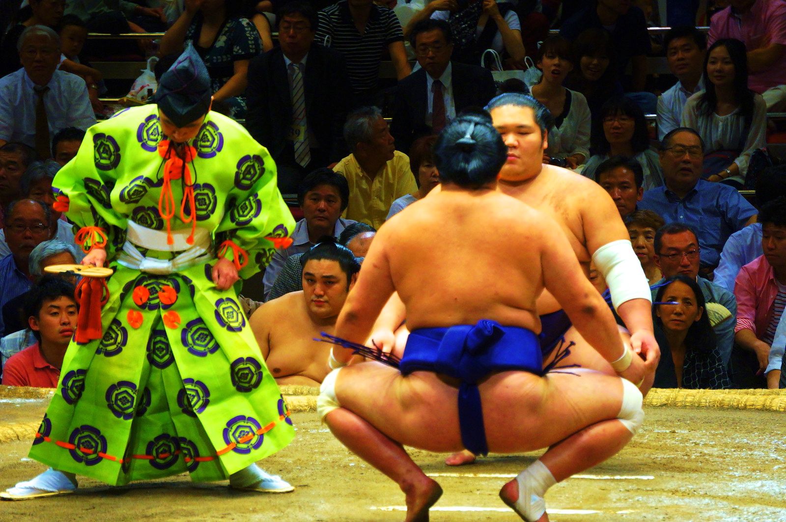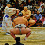 Old legend says that the Japanese race exists as the result of a sumo match among Gods, and since then, the bouts have continued as the tradition of pitting man-against-man in the open ring, trying to knock out the weaker of the two. The competitors train for years with a strict diet and regimen trying to increase their strength (and weight), and hoping to reach the coveted top rank of Yokozuna.