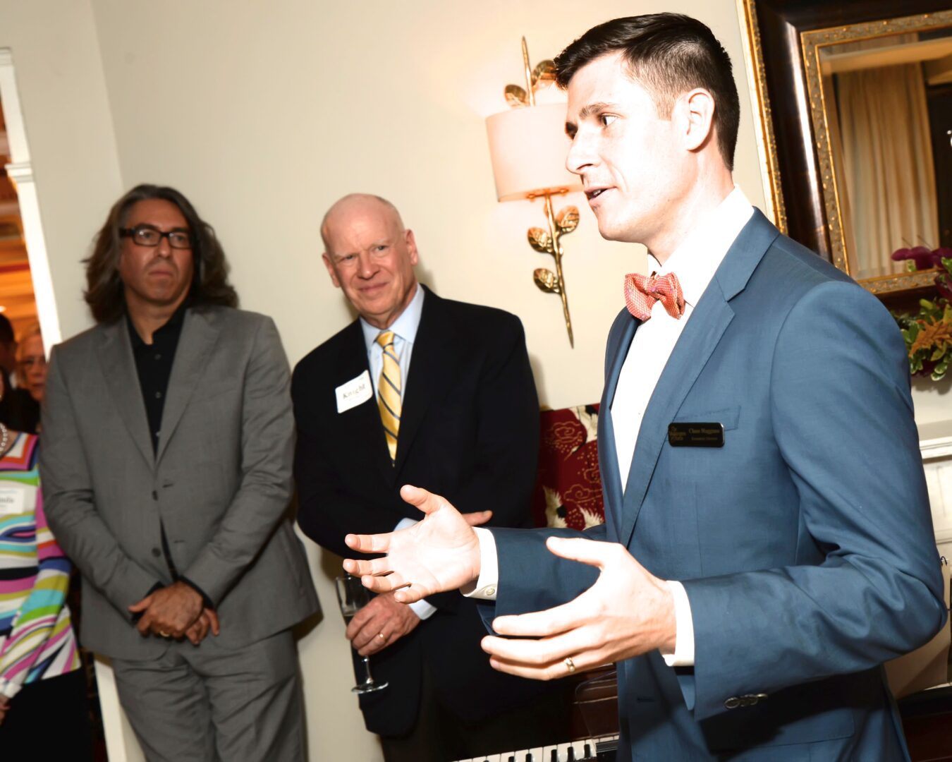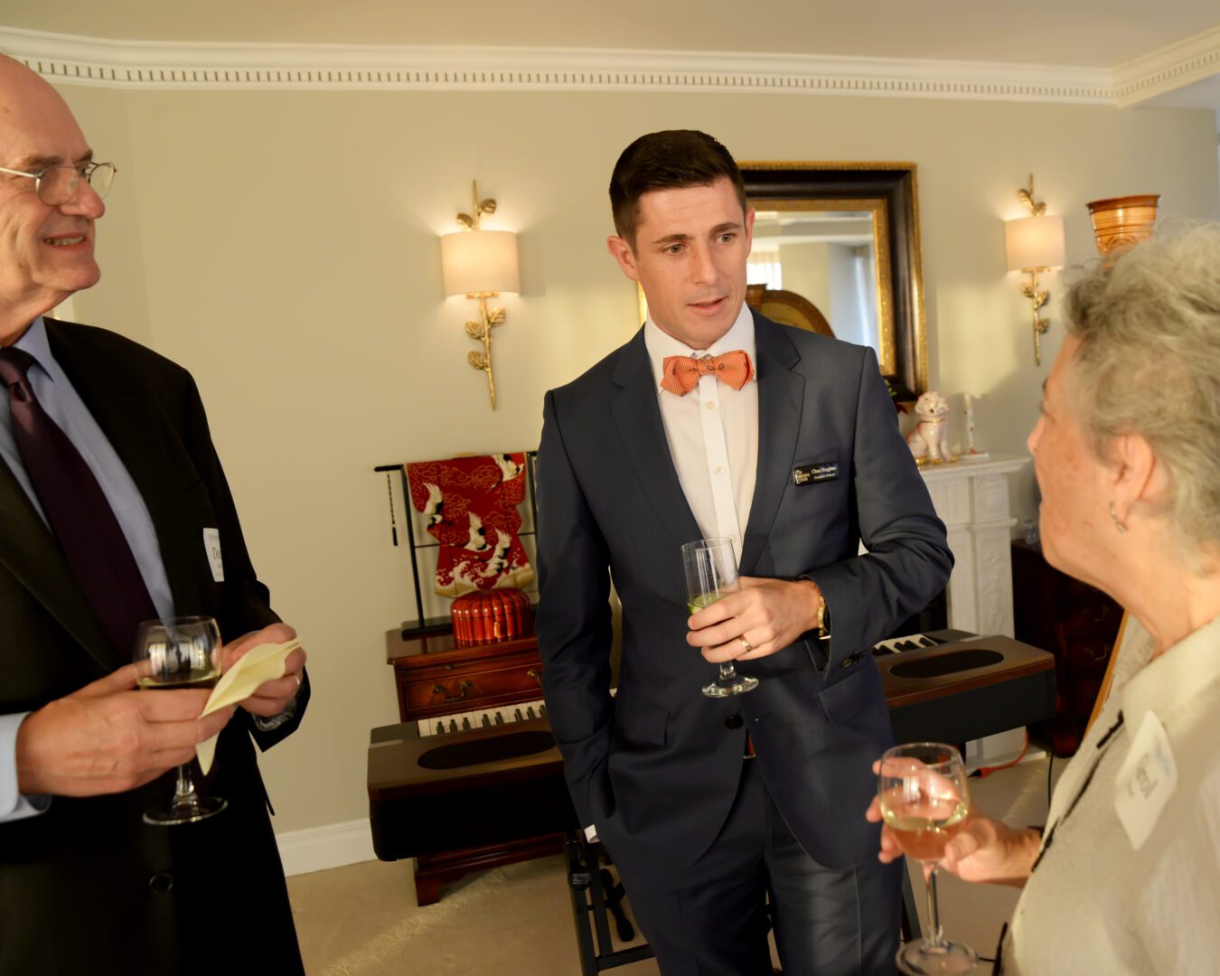 “There are many people here who have a long history of being friends of the chorus and then other people here who are newer in their friendship with the chorus, and I’m actually one of the new ones,” said recently appointed Executive Director Chase Maggiano. “When I first got to know the chorus, there was a word that kept popping up in my mind, and that word was courage. I think anyone who knows Julian .knows this chorus is not afraid. We will go sing a concert for 6000 people wearing virtual reality headsets. We will create an entire music series devoted to new music, and we will go out into the community in our own backyard to find people who don’t have access to music and make sure they do. I’m still new, so I get to learn all of this and be really excited about it, and this is something that’s really, really jazzing me up. Our outreach program is a program in which 40 or so singers every year raise their hand and volunteer to go out at nights and weekends to sing for people that don’t have music. Now, we identify a need in DC where people, for financial reasons or for health and mobility reasons, can’t make it to The Kennedy Center, so we make sure that what we are doing can make it to them. We take it so seriously that we perform almost twice as many outreach performances each year as we do performances in that hall for our regular concert season. That’s a pretty bold statement, and I think says a lot about our priorities.