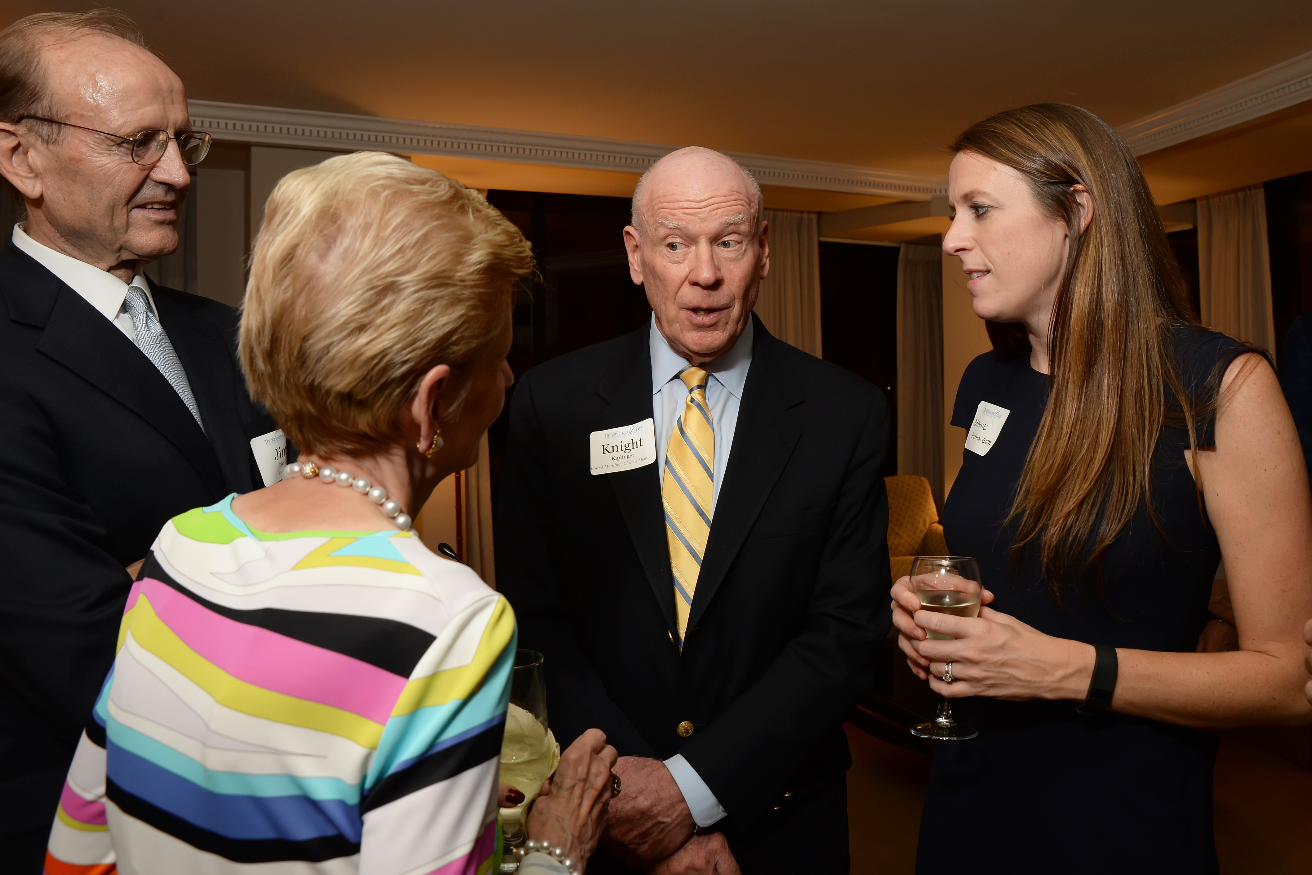 Ann & Knight Kiplinger are now ‘besties’ with Linda & Jim Beers after meeting at a concert by The Washington Chorus of which Knight is Chairman Emeritus. The Beers, who can be seen at The Kennedy Center several times a week, live in The Watergate South and offered their luxurious apartment as a perfect venue for the VIP Season Preview 2016 kick-off party for TWC.