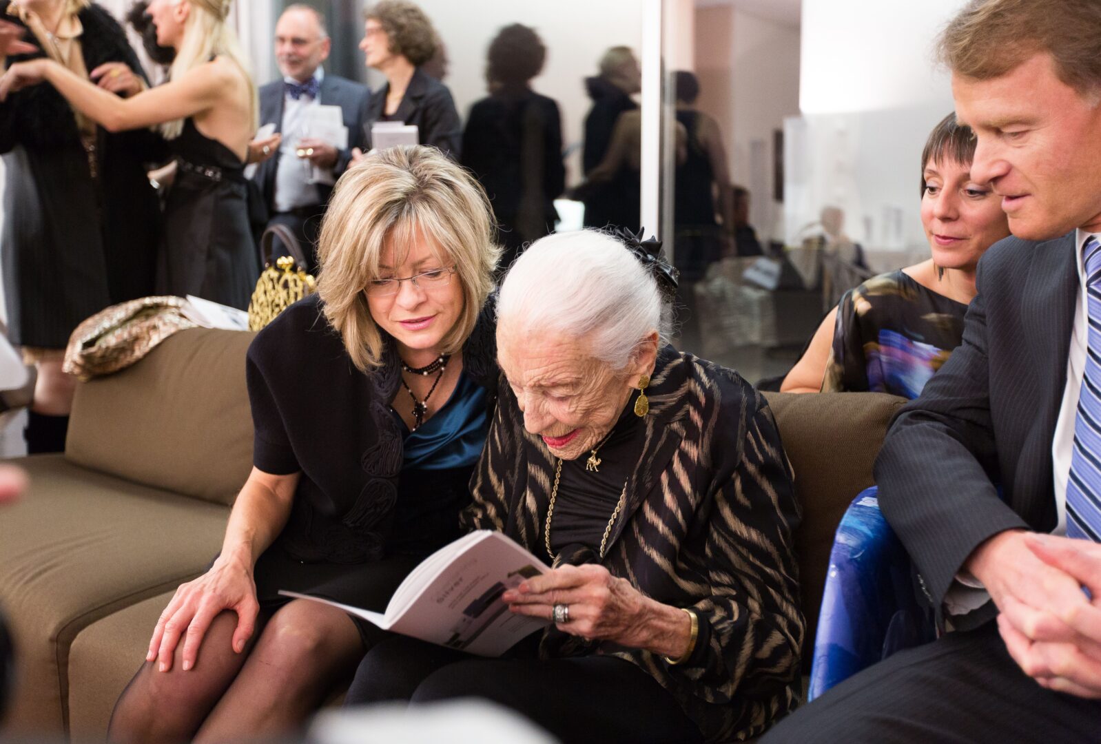“Marlene Dietrich” – the gravel voiced German-born femme fatale movie star of the 1930’s – showed up at The Residence of The Ambassador of Switzerland and Mrs. Manuel Sager to serenade Lolo Sarnoff, – a Swiss-German artist, scientist, entrepreneur, philanthropist and founder of Arts for the Aging.